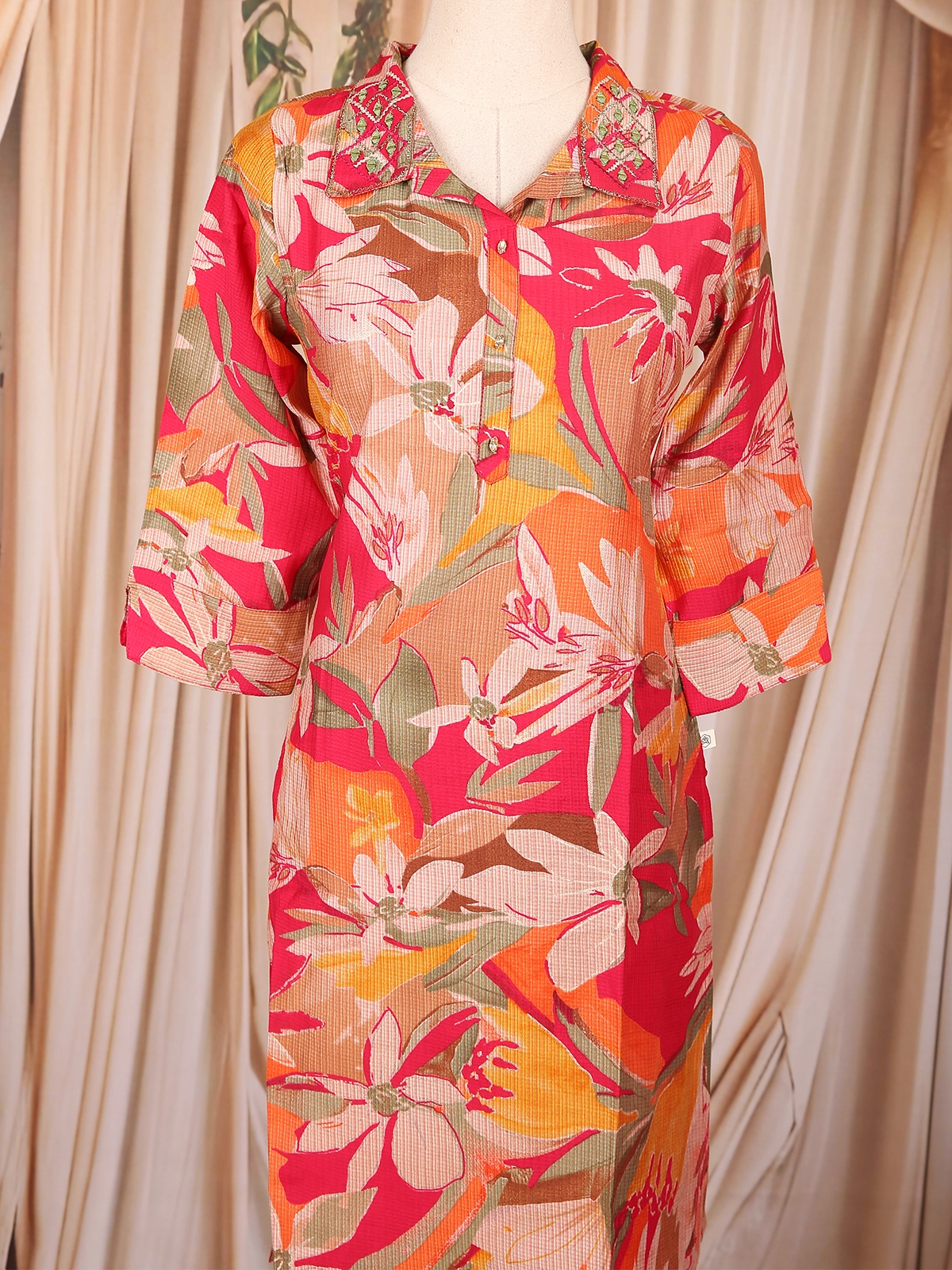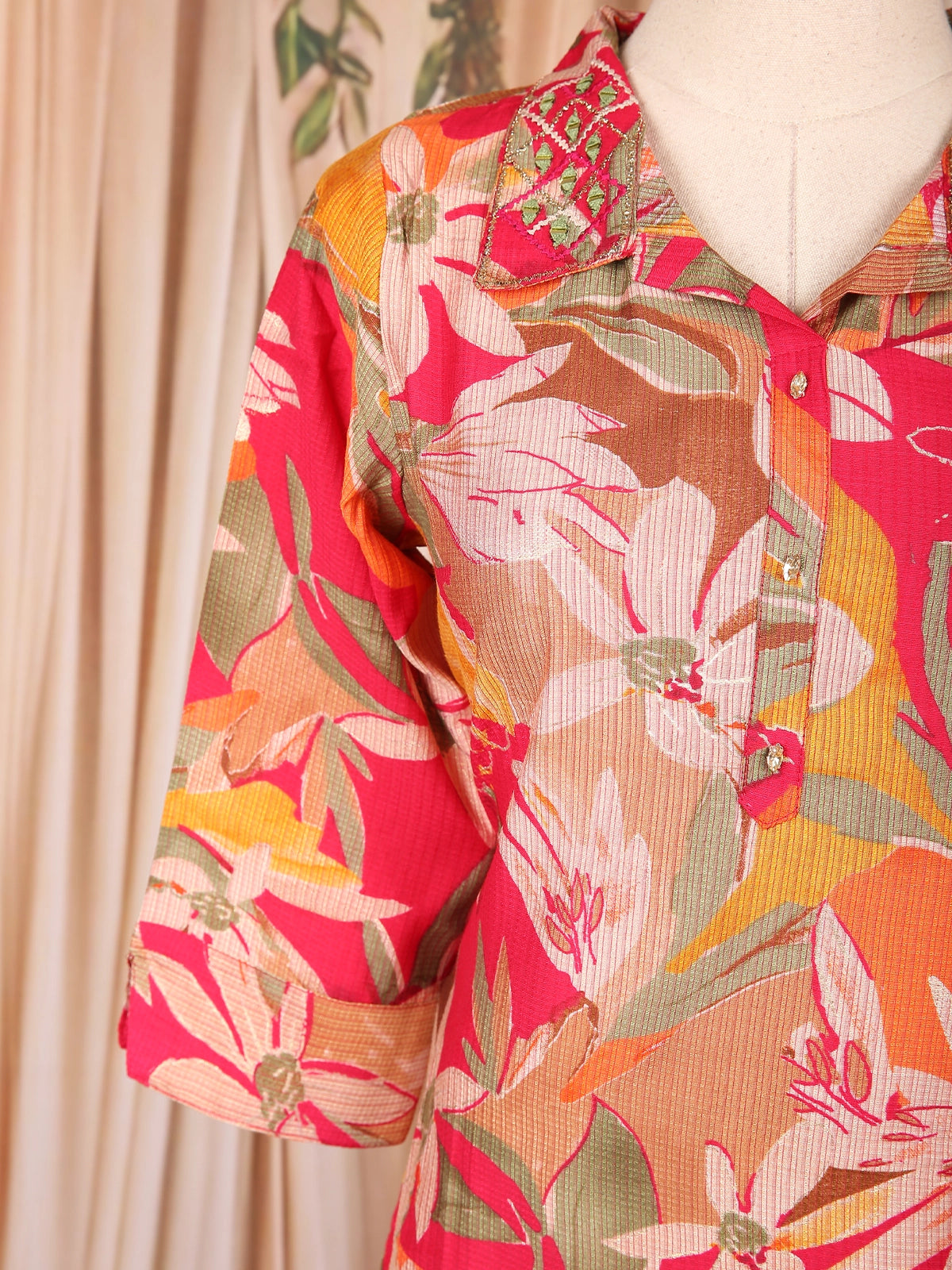 Step into fresh, feminine elegance with this Pink Floral Printed Cotton Salwar Suit. Crafted from pure breathable cotton, this three-piece set offers unmatched comfort while ensuring a charming ethnic appeal — perfect for everyday wear, office dressing and casual outings.