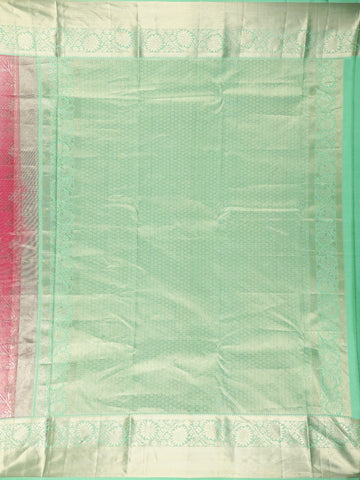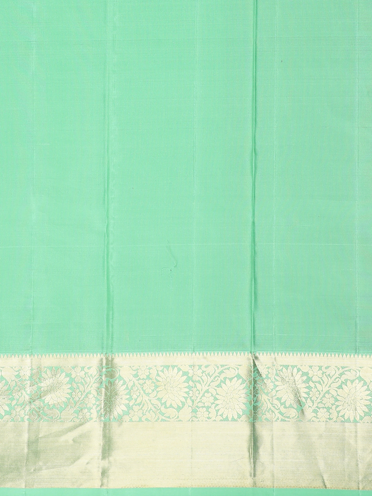 Crafted from premium pure silk, the saree offers a rich sheen, firm weave, and graceful fall—hallmarks of authentic Kanchipuram craftsmanship. The contrast green blouse completes the ensemble, making it an ideal choice for weddings, festive occasions, temple ceremonies, and special celebrations.