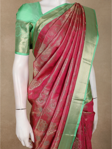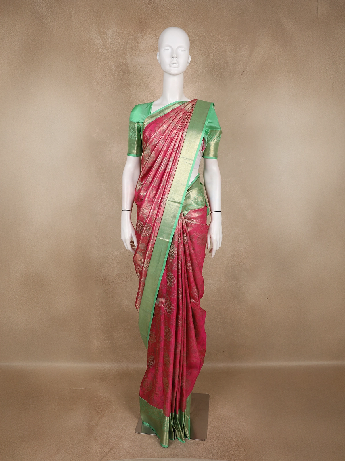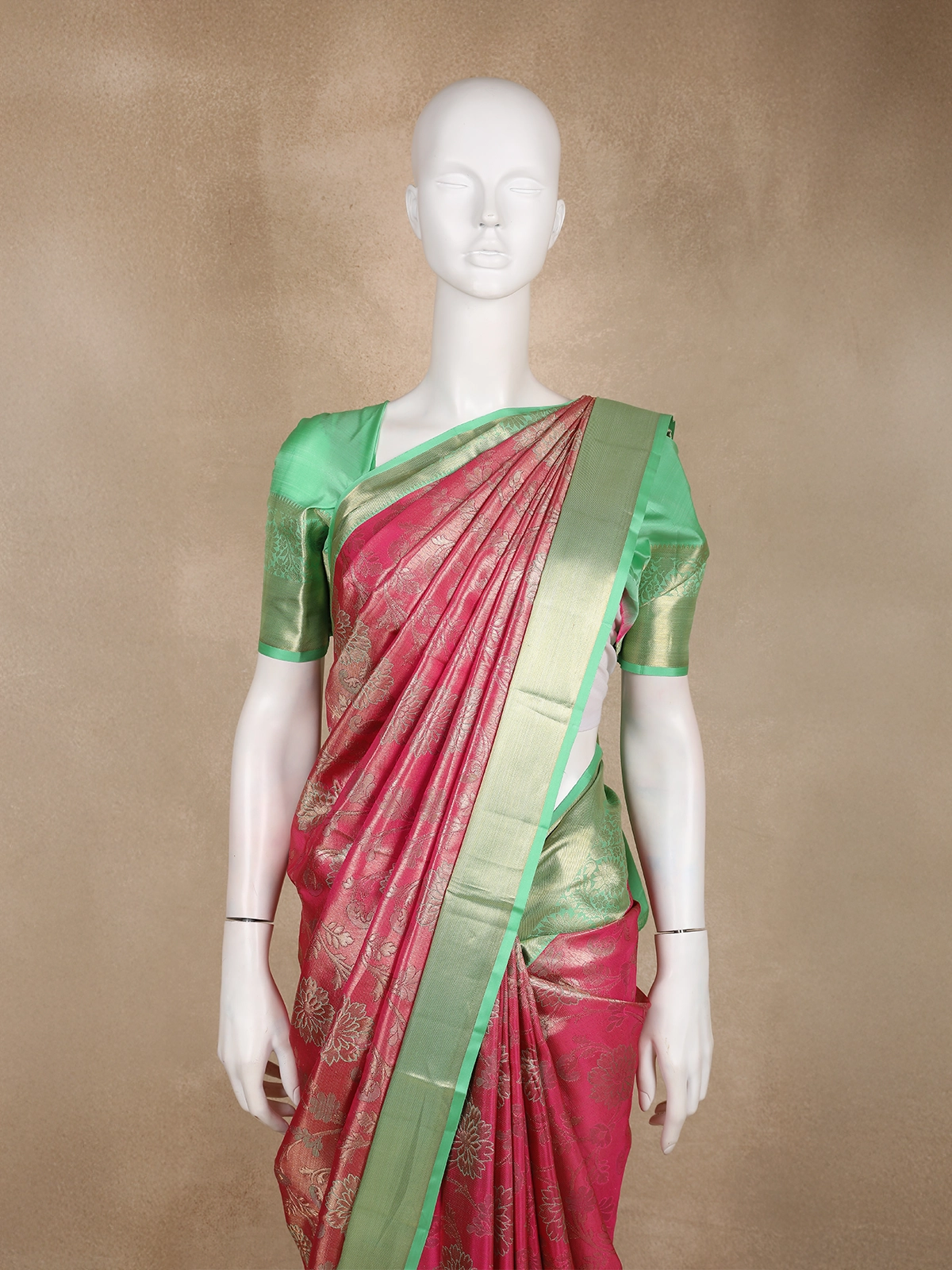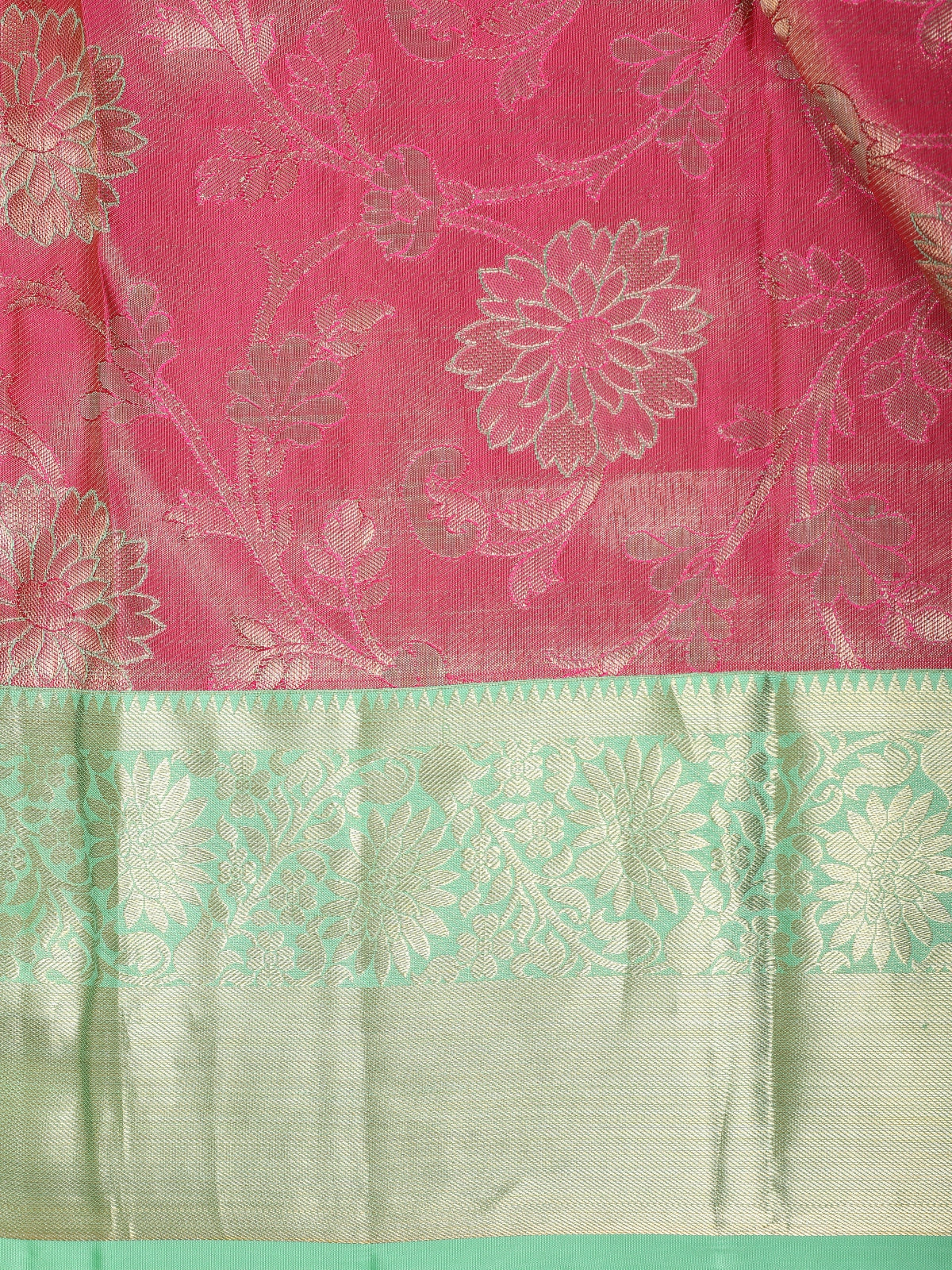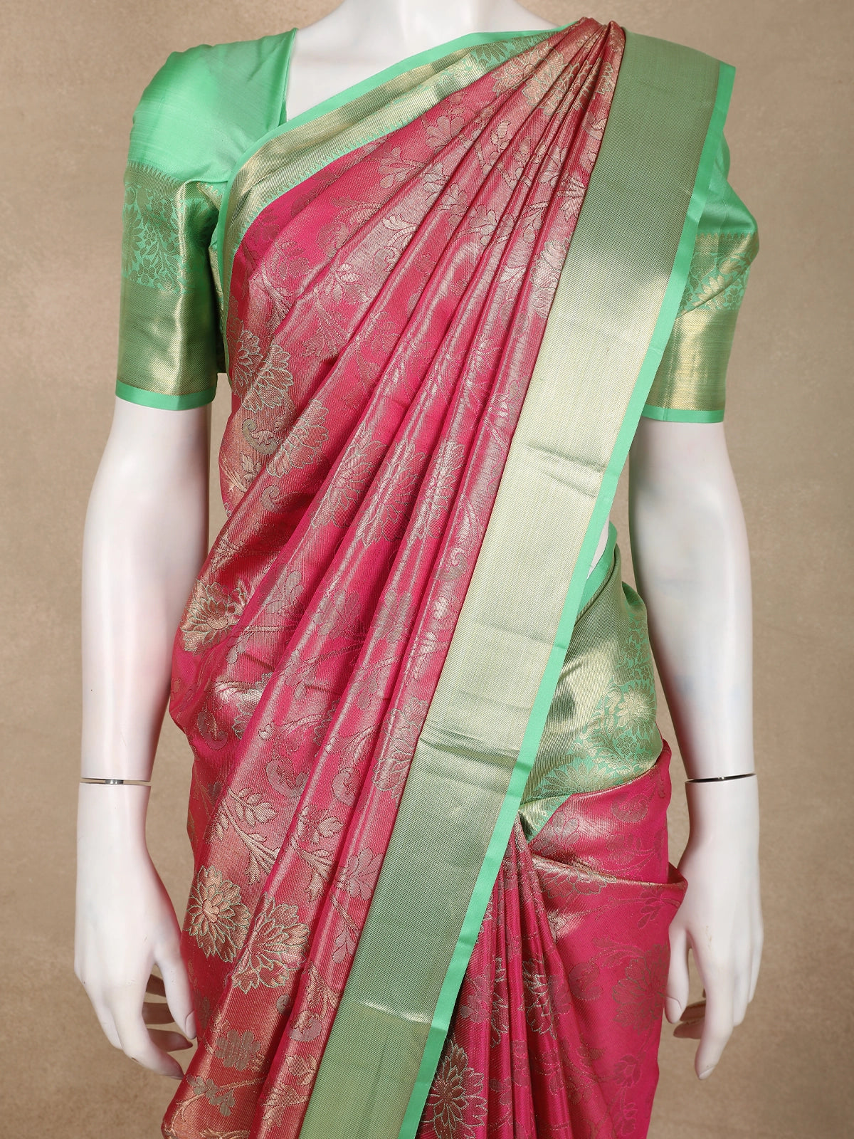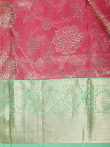 Pink Floral Woven Pure Kanchipuram Silk Saree with Zari Border