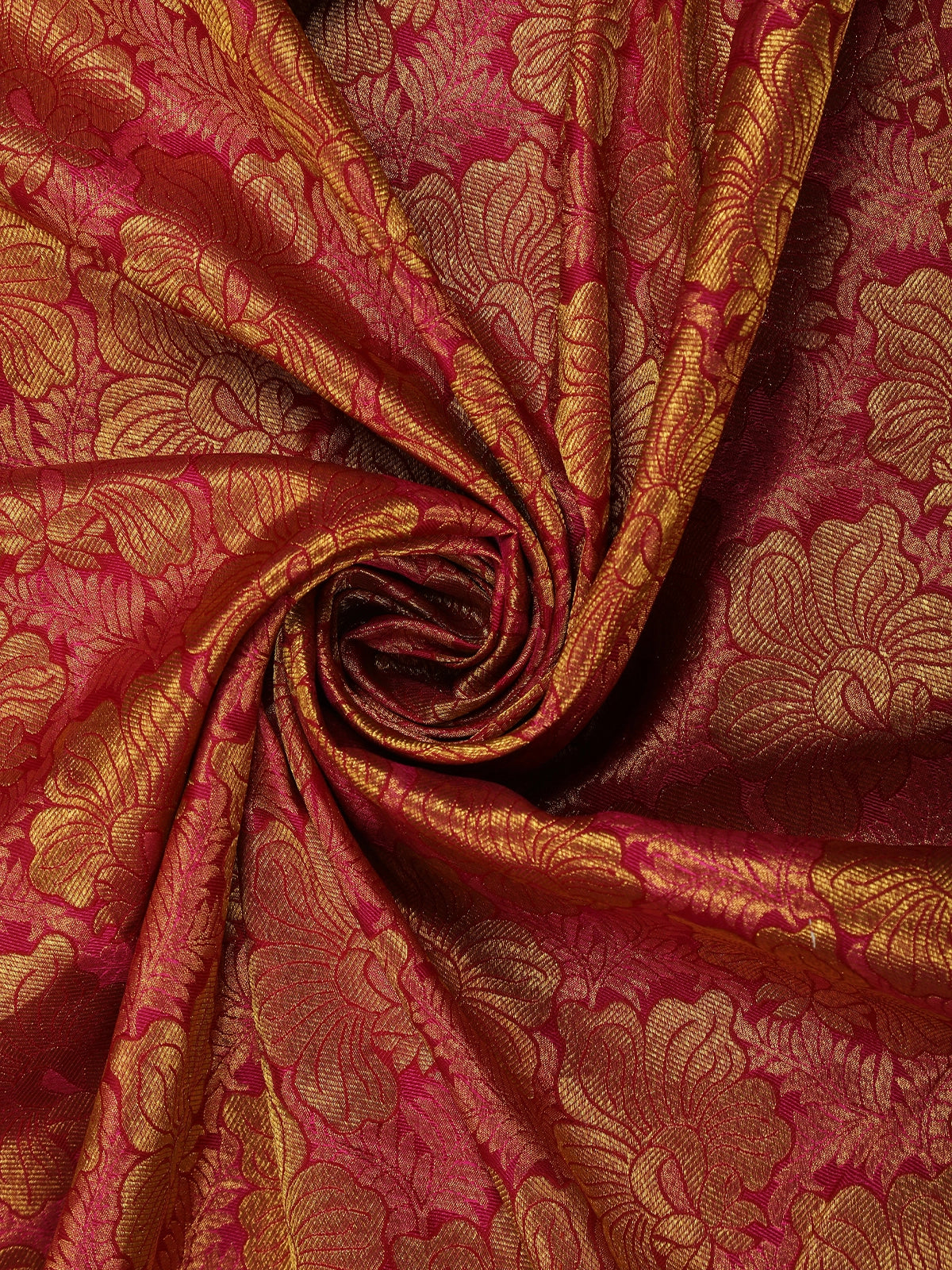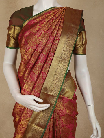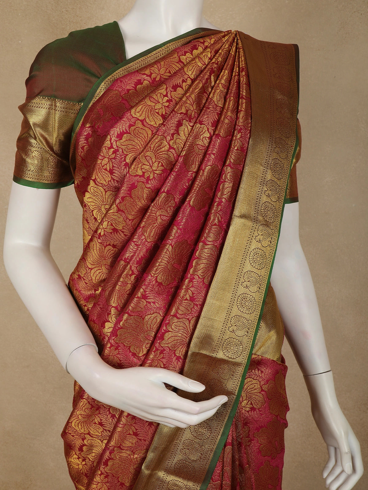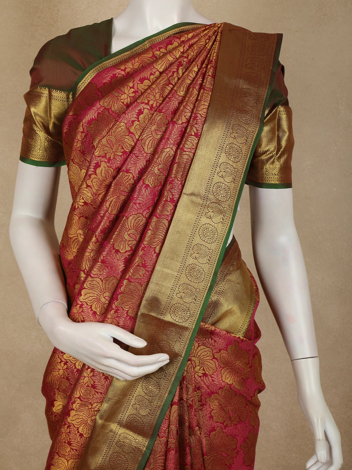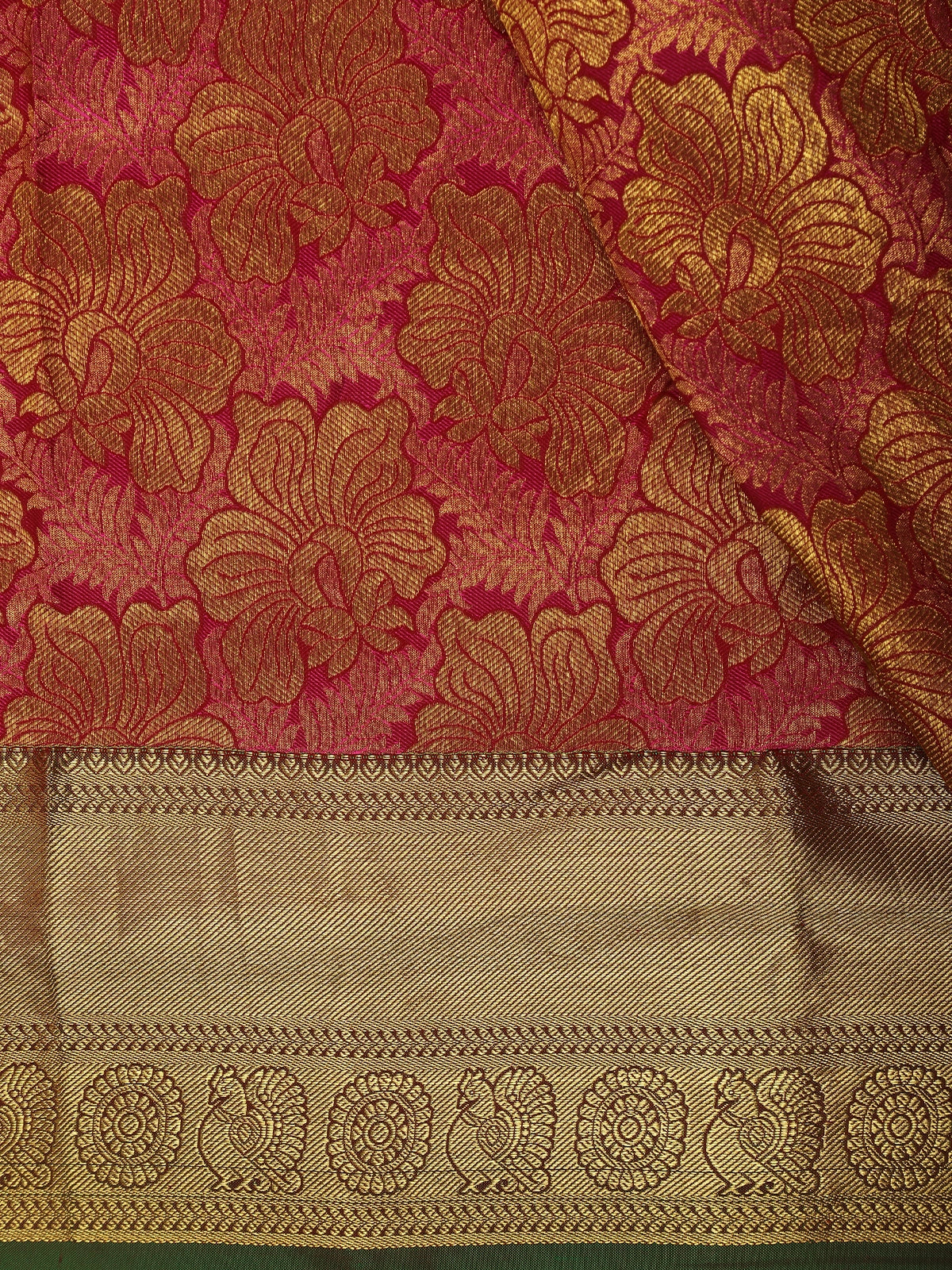 Pink Floral Zari Woven Design Pure Kanchipuram Silk Saree with Contrast Zari Border