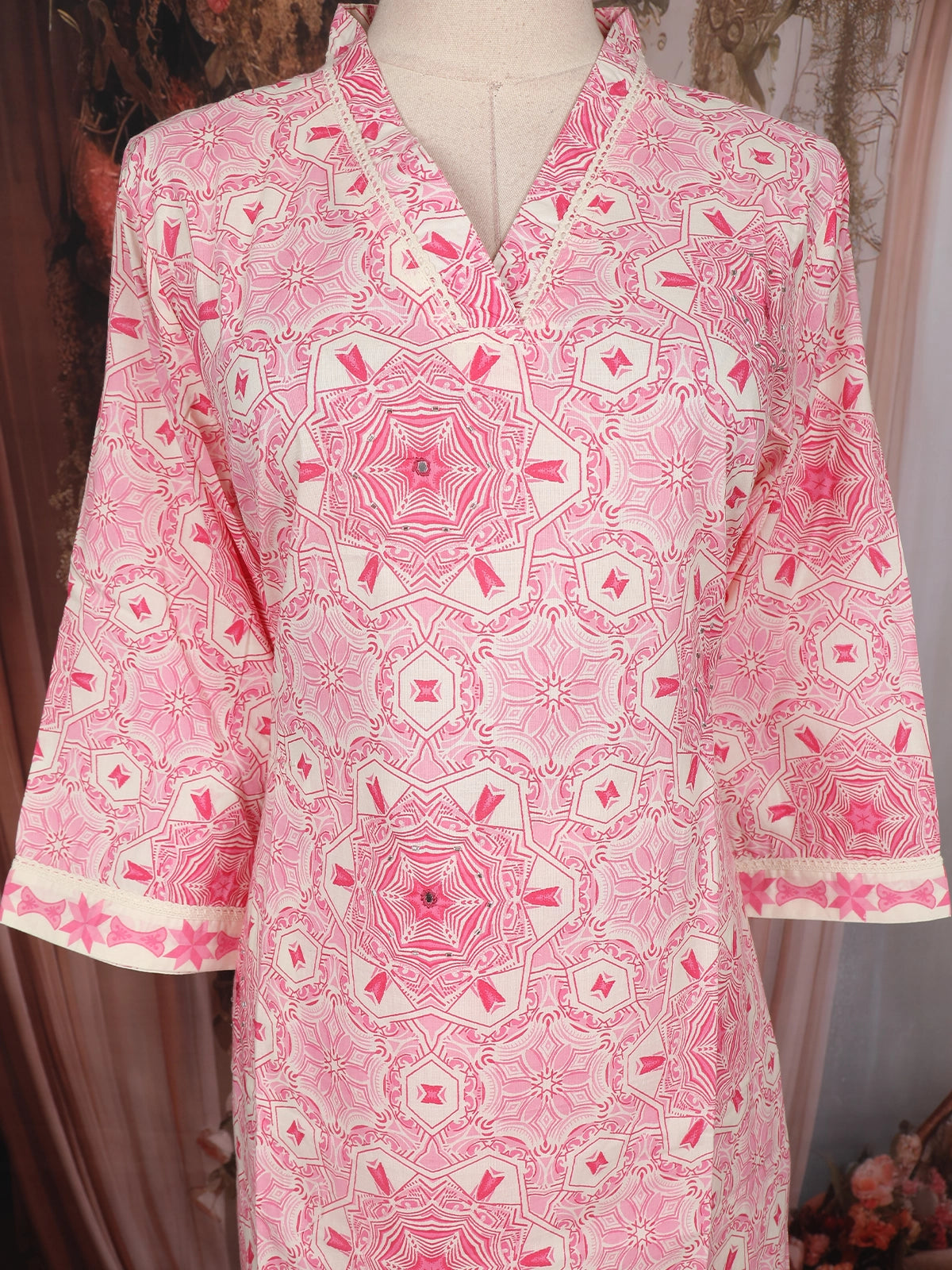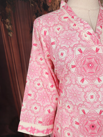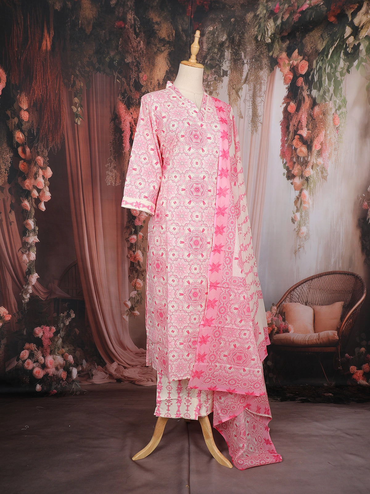 Pink Geometric Printed Cotton Salwar Suit with Dupatta