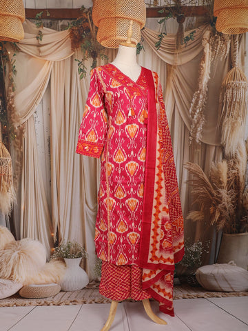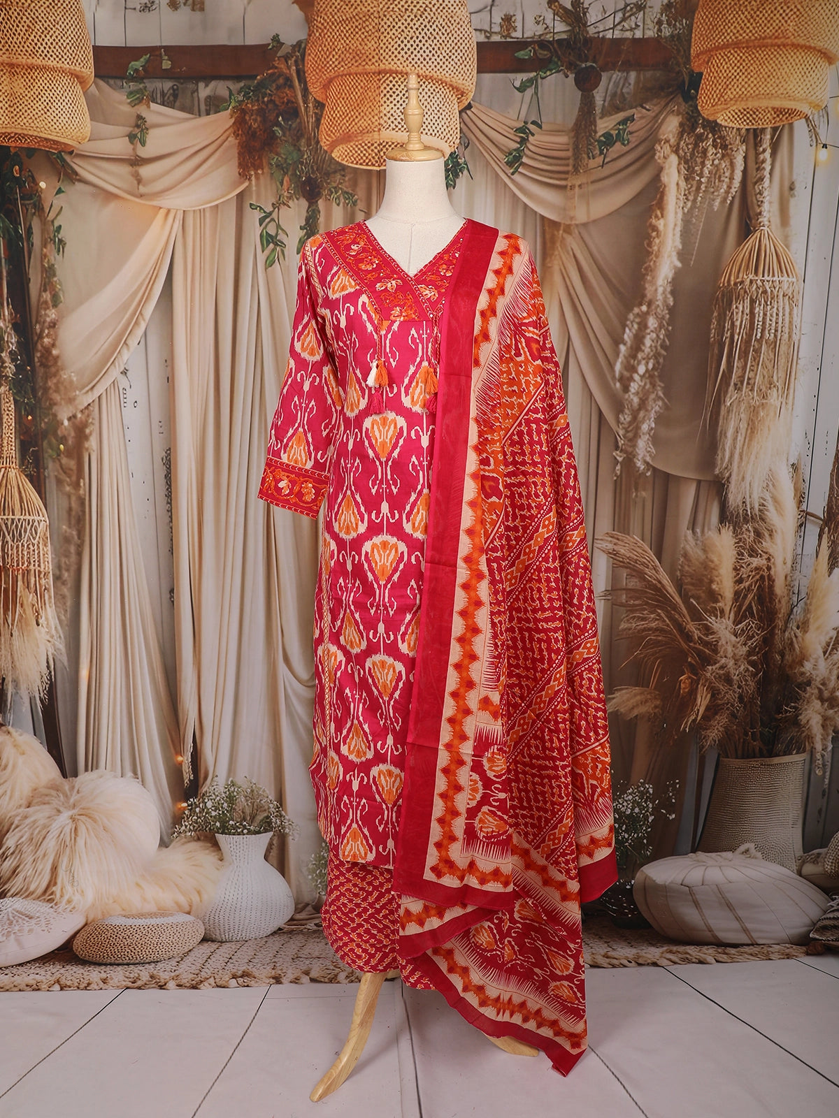 Pink Ikat Printed Cotton Salwar Suit with Dupatta
