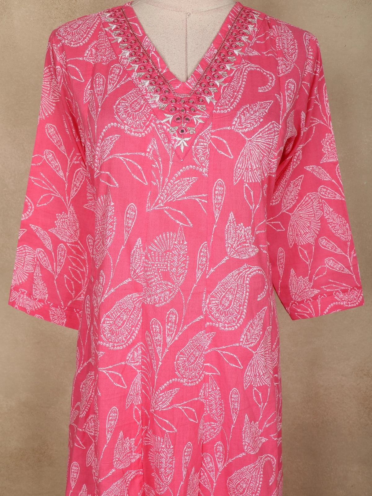 Step into effortless elegance with this charming Pink Cotton Anarkali Suit. Designed with breathable comfort and graceful flair, this ensemble brings together refreshing prints and a flattering silhouette — perfect for your everyday style upgrade.