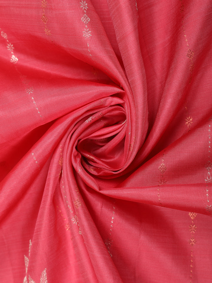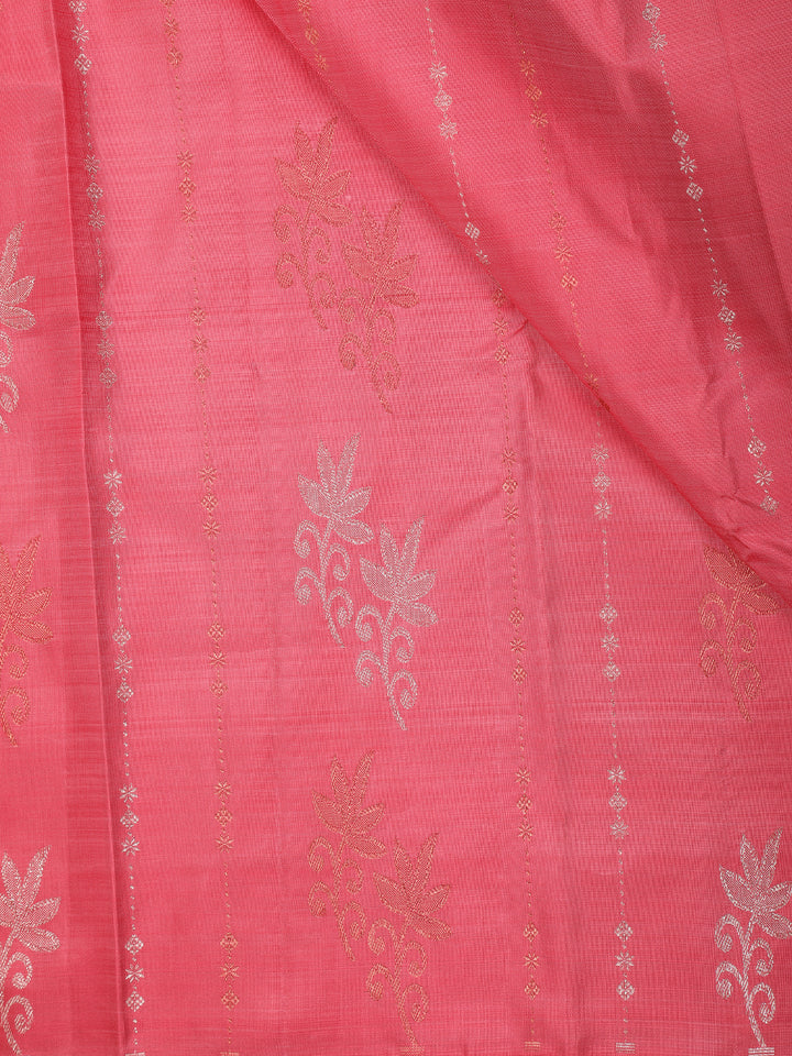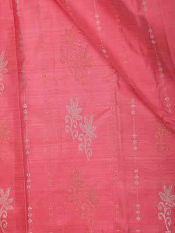 Pink Kanchipuram Bridal Silk Saree with Stripes and No Border