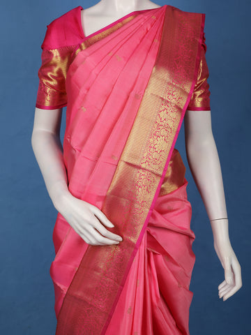 Pink Solid Woven Design Pure Kanchipuram Silk Saree
