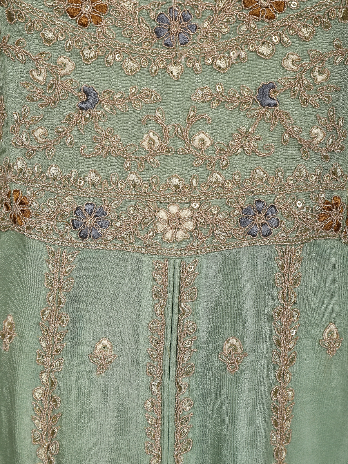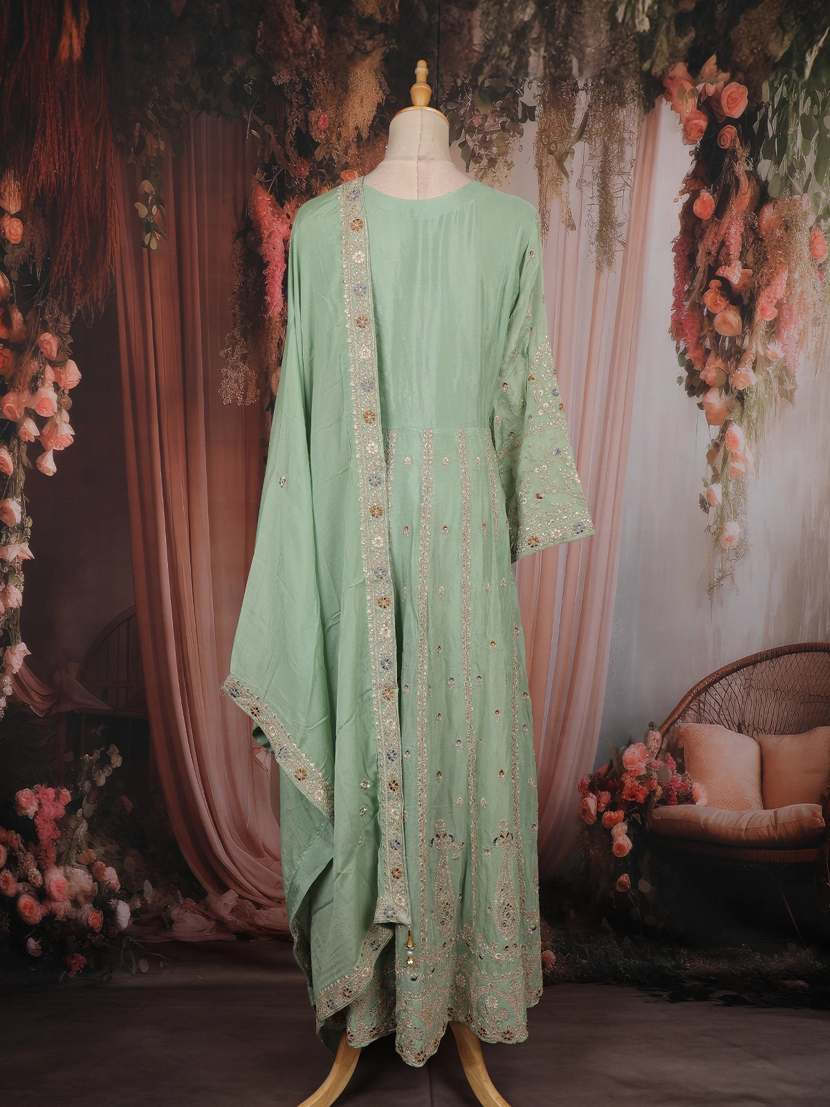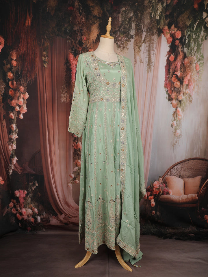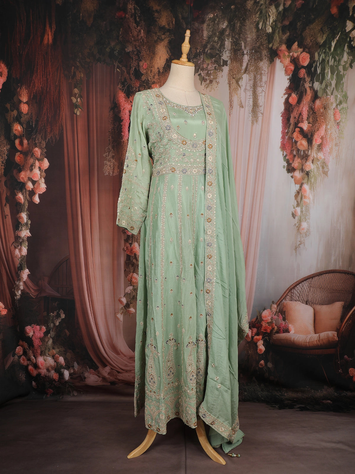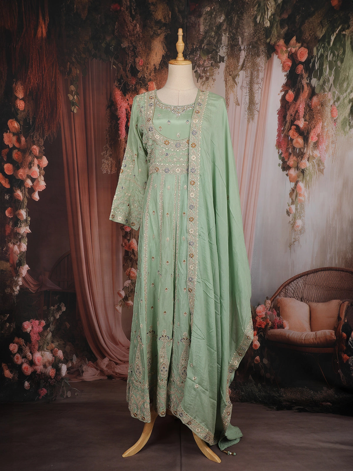 Pista Green Floral Embroidered Chiffon Anarkali Salwar Suit with Dupatta