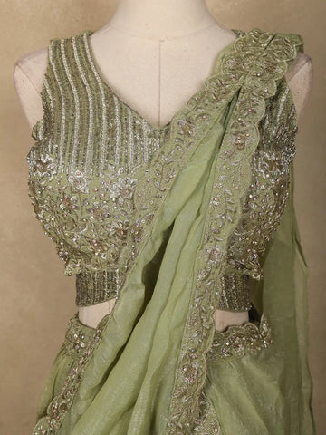 Pista Green Floral Embroidered Design Sheer Lehenga