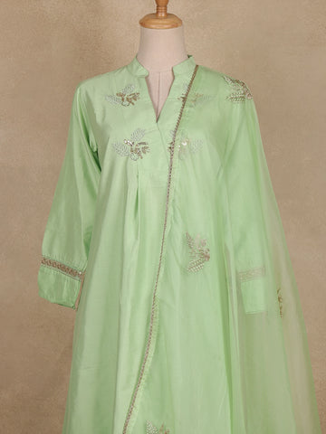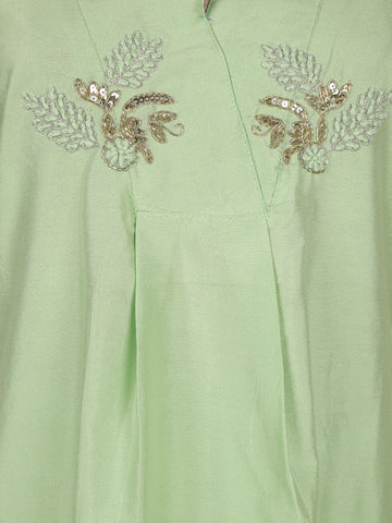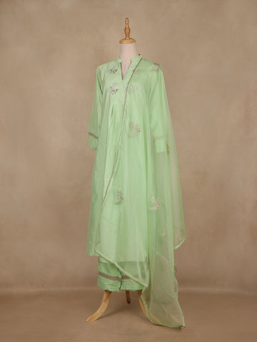Pista Green Floral Sequins Embroidered Silk Salwar Suit