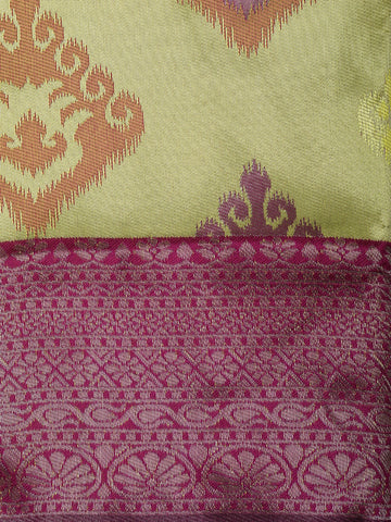 Pistachio Green Floral Zari Woven Design Art Silk Saree with Contrast Zari Border