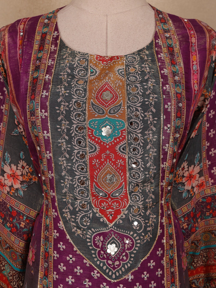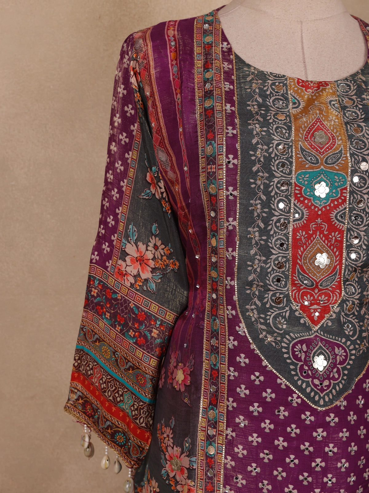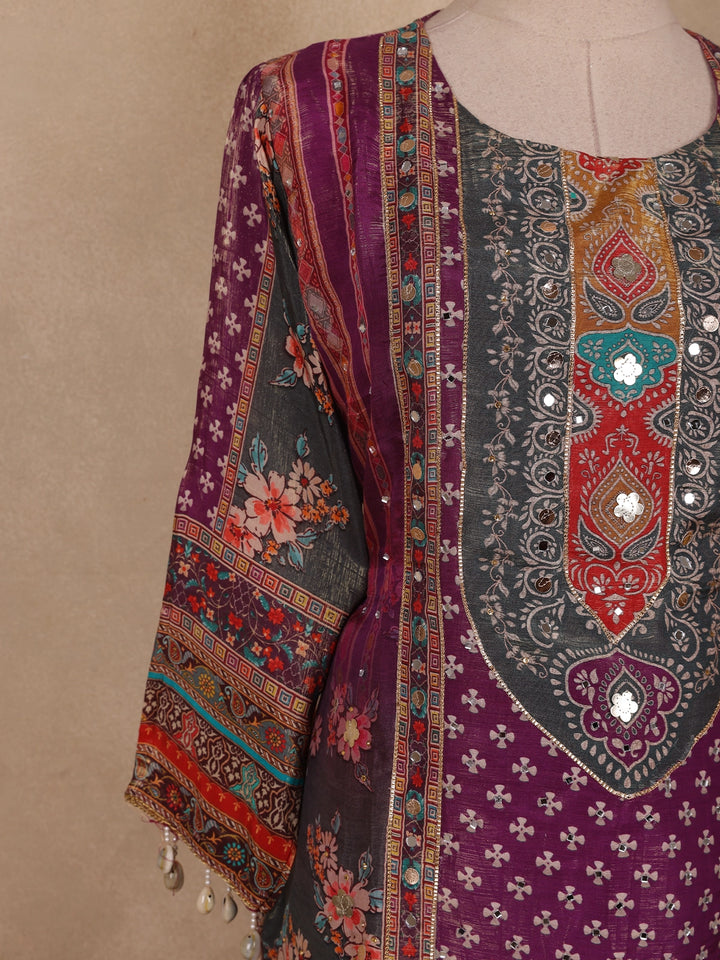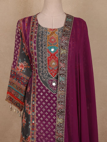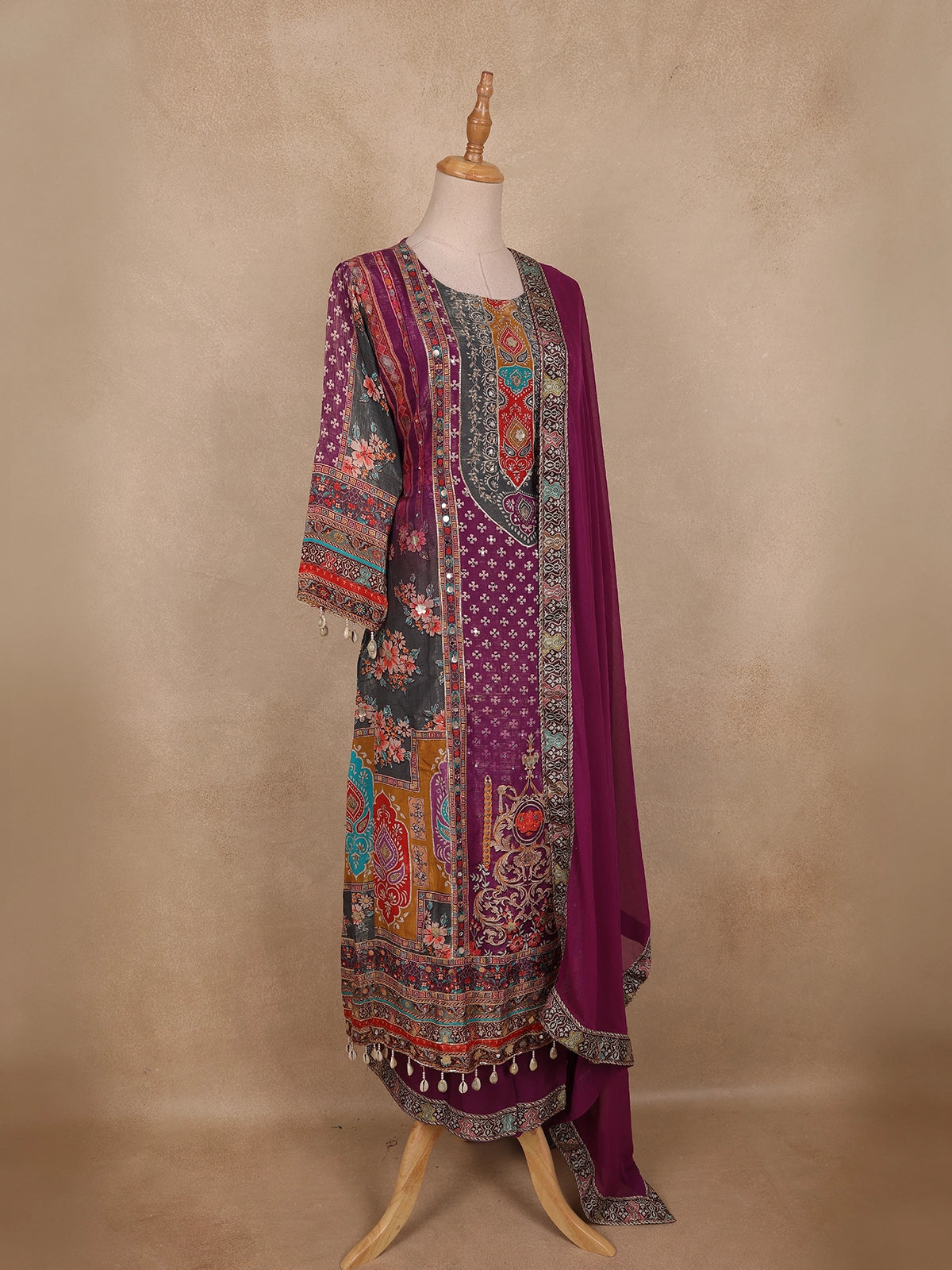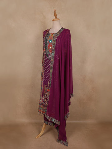 Plum Purple Ethnic Printed Design Georgette Palazzo Suit