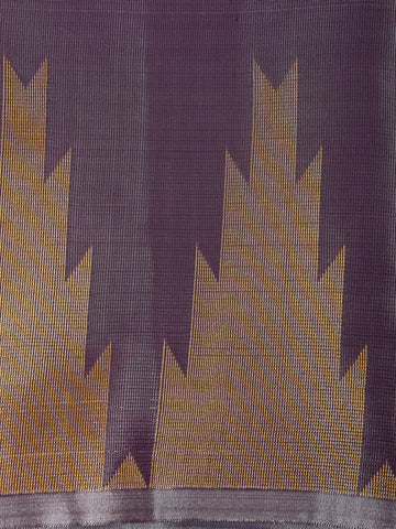 Plum Purple Floral Butta Zari Woven Design Tissue Designer Saree with Temple Border