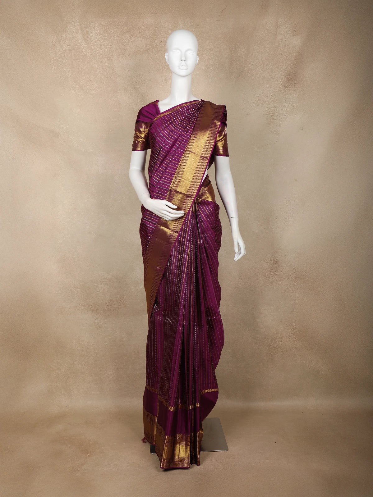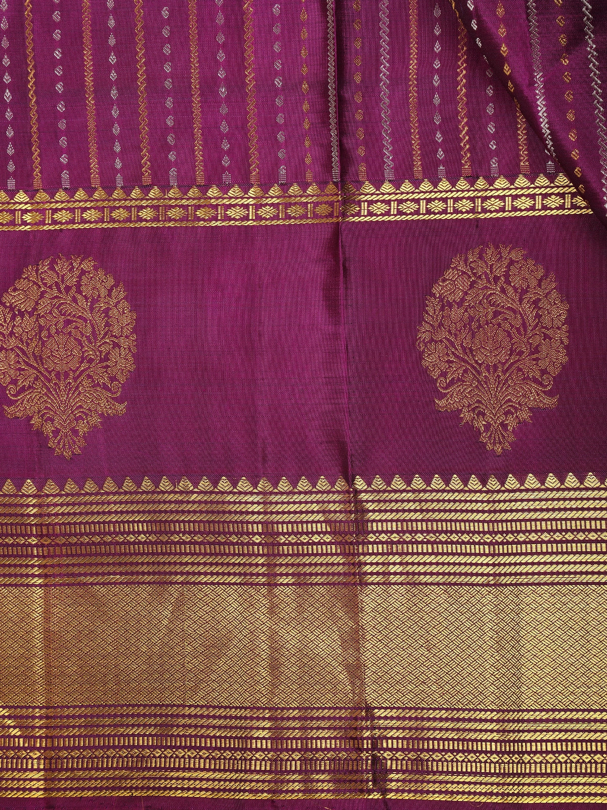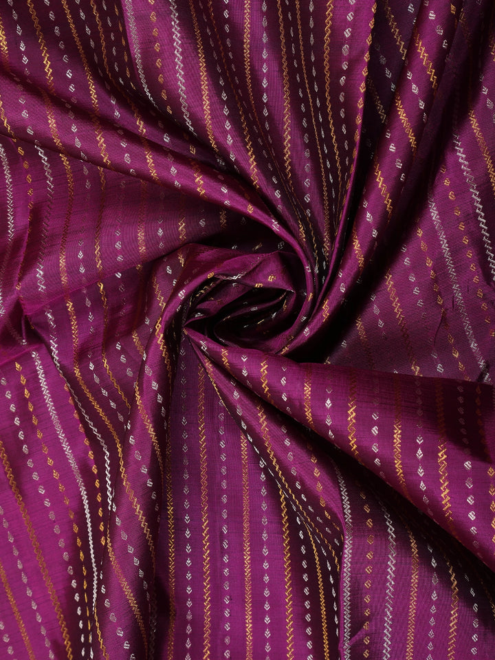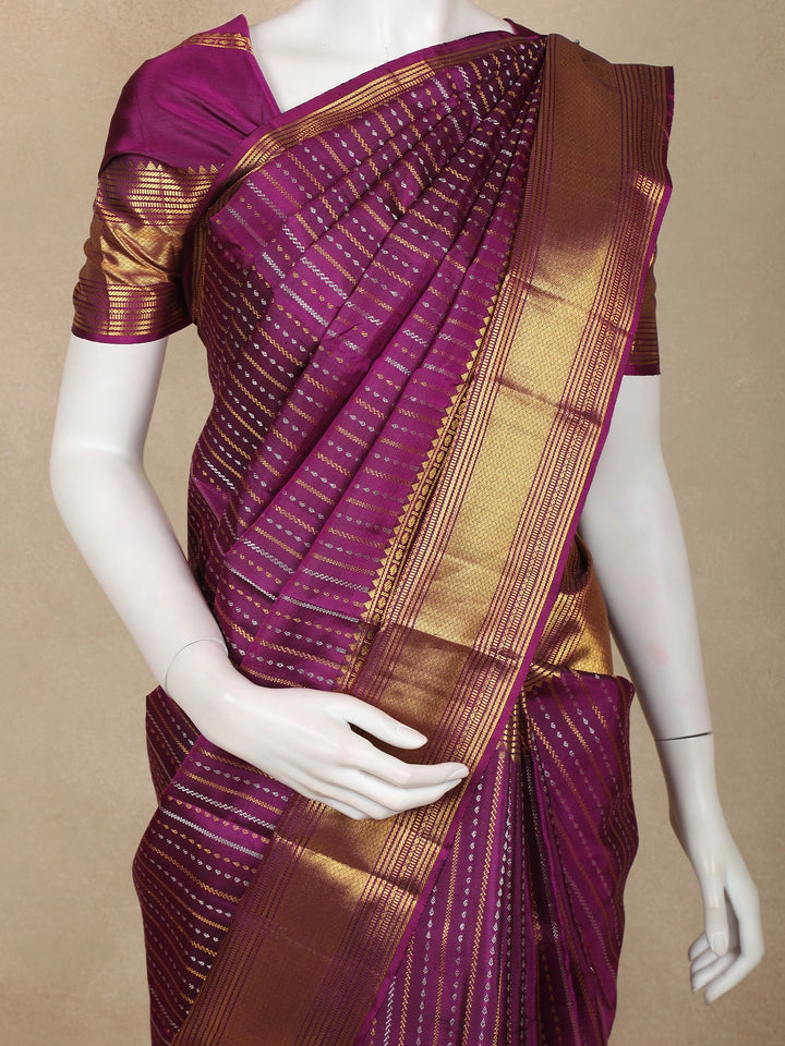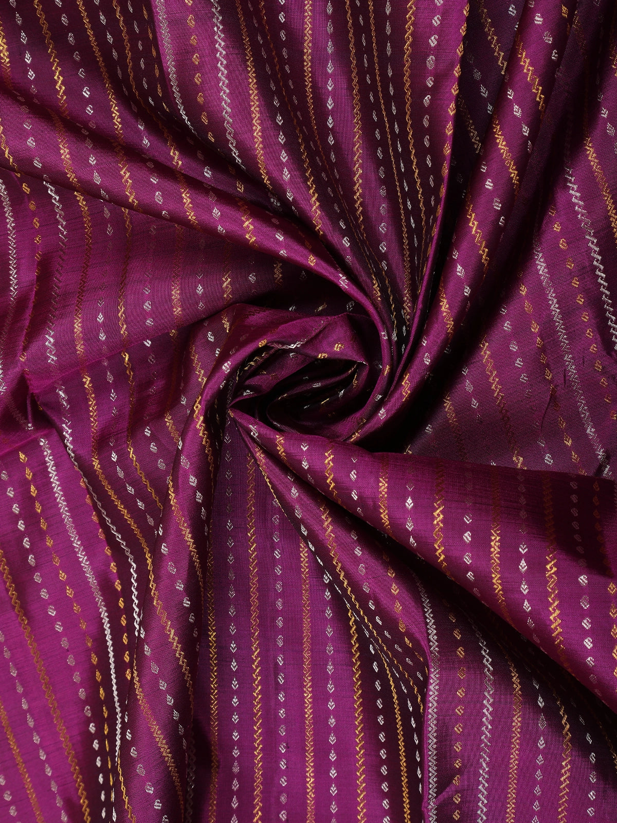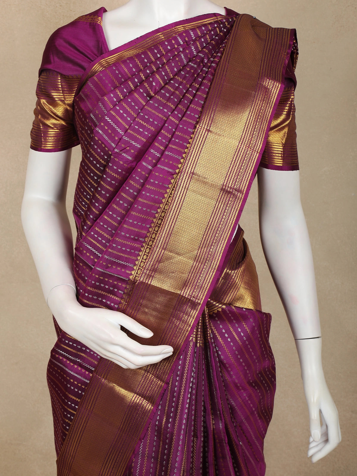 Plum Purple Stripes Woven Design Pure Kanchipuram Silk Saree with Gold Zari Woven Border