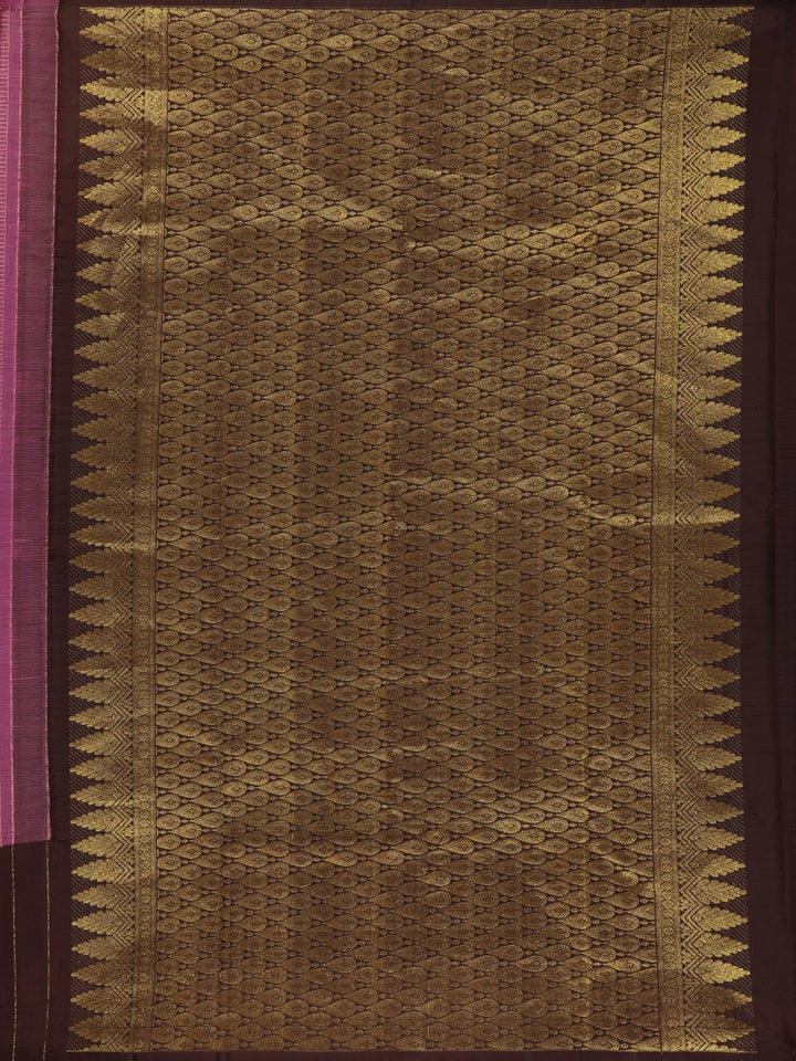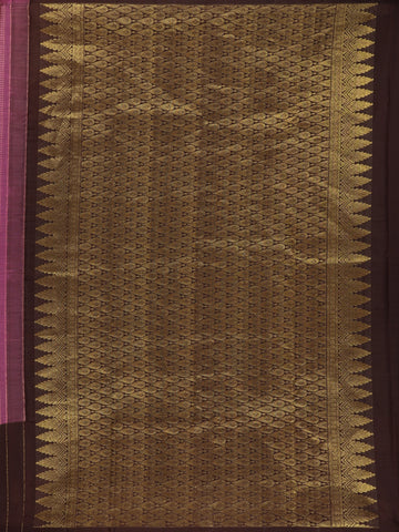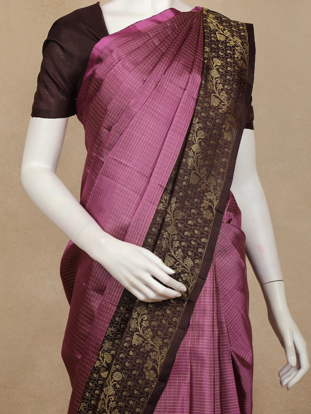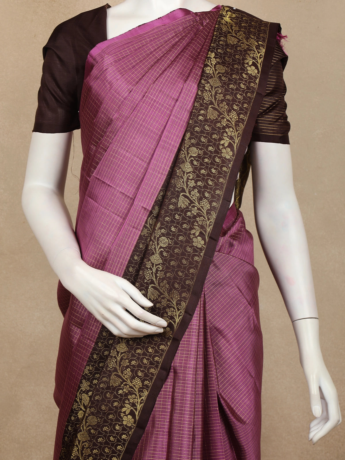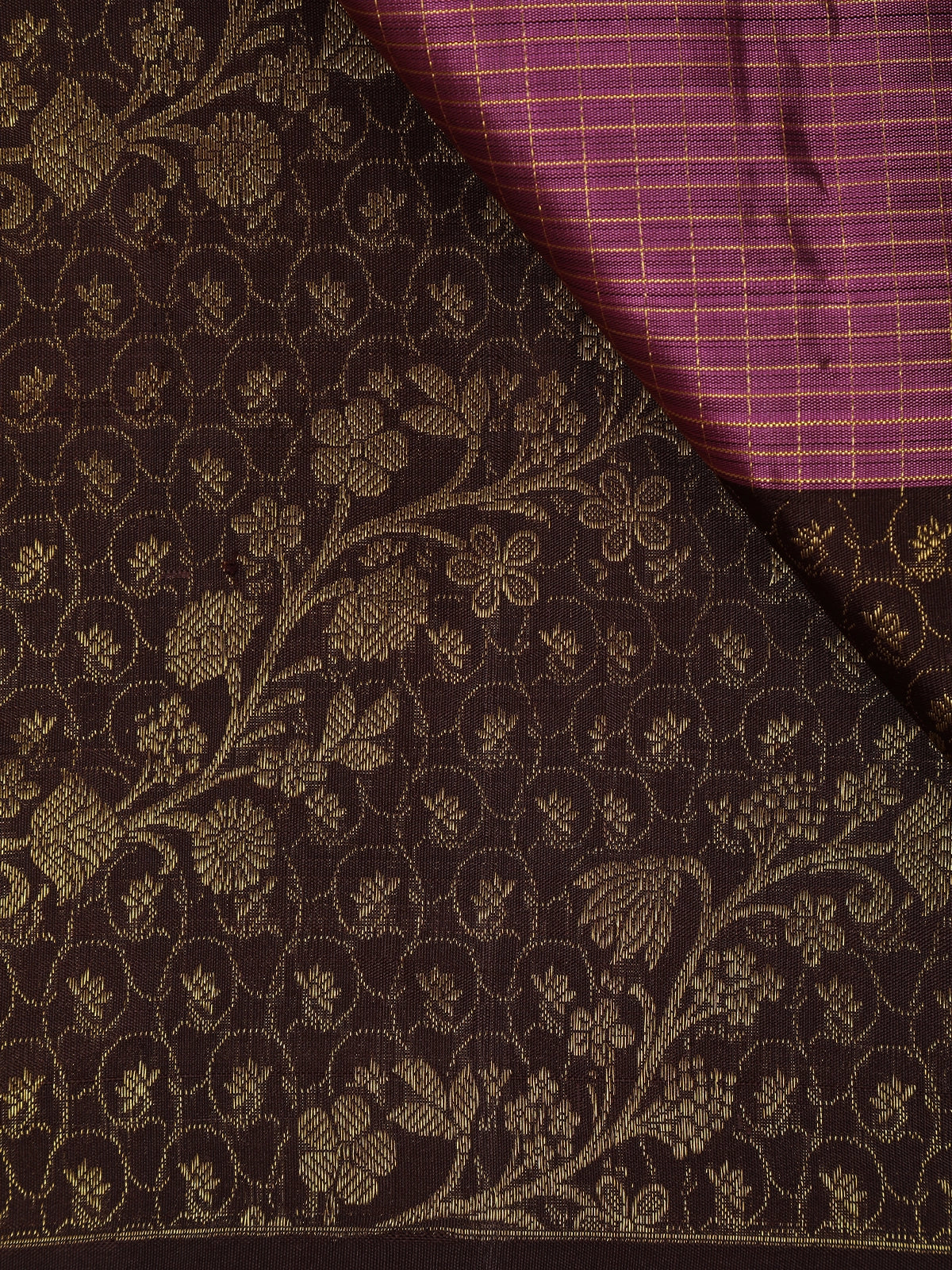 Purple Checked Woven Pure Kanchipuram Silk Saree with Contrast Brown Zari Border