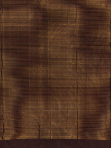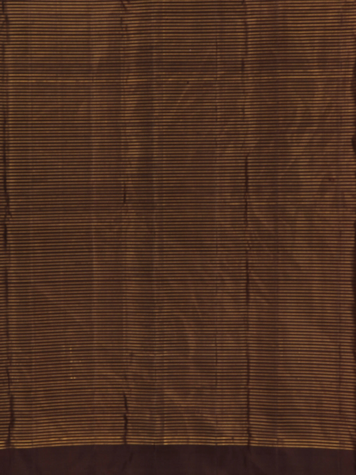 The standout detail lies in the contrast dark brown border and pallu, elaborately decorated with dense gold zari motifs inspired by floral vines. The grand pallu adds a luxurious finishing touch — making this saree a flawless choice for weddings, festive occasions, and cultural celebrations.