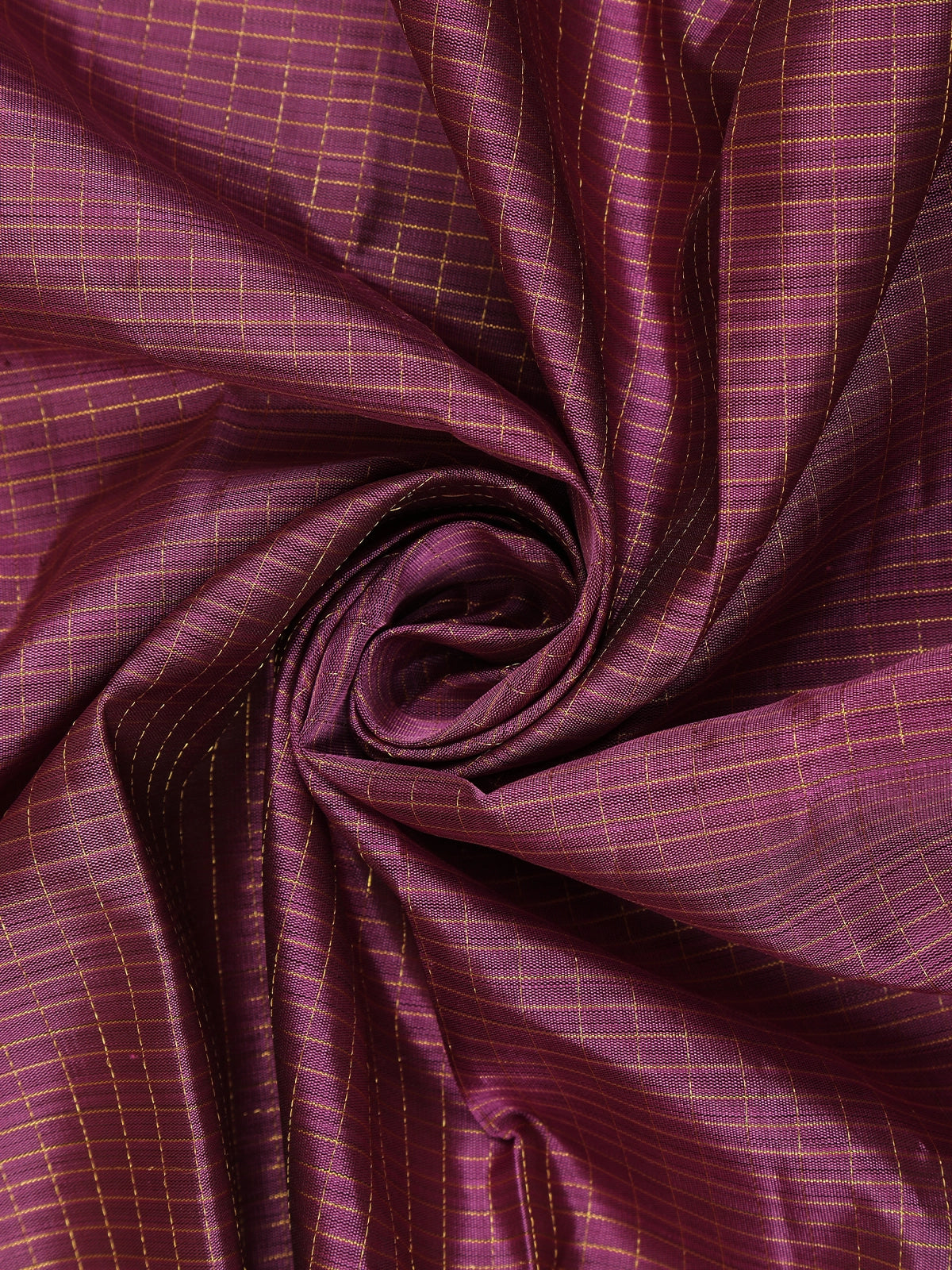 An exquisite blend of traditional charm and modern poise, this Purple Pure Kanchipuram Silk Saree features a finely woven checked pattern throughout the body. The rich silk fabric reflects a gorgeous sheen, enhancing the depth of the magenta hue.