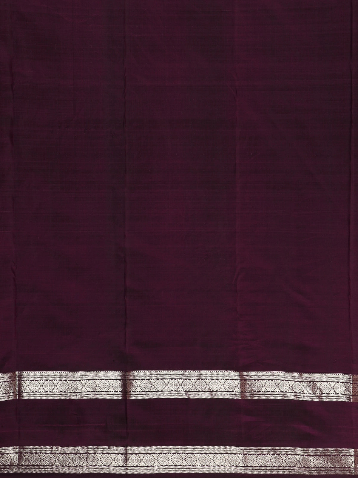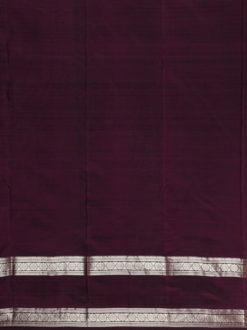 Framed with a matching zari woven border, the saree reflects the hallmark craftsmanship of Kanchipuram weaves. The matching purple pallu, enhanced with zari detailing, lends a cohesive and graceful finish to the drape. Completing the set is a matching purple blouse, perfectly complementing the saree for a polished traditional look.