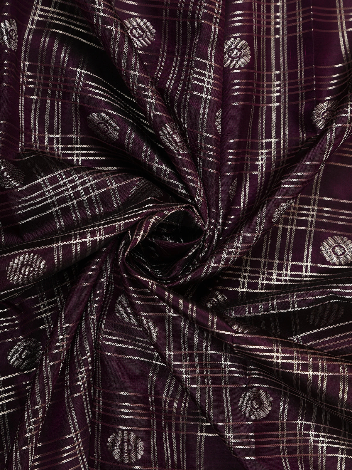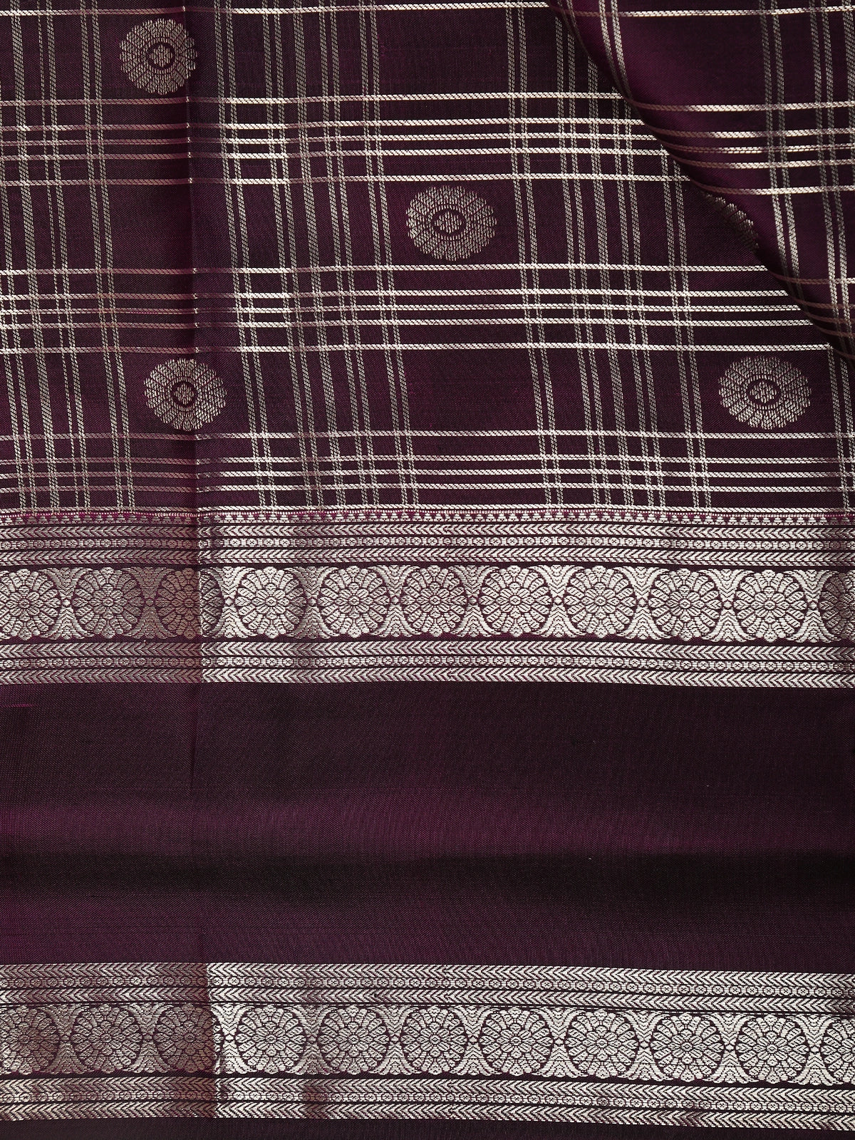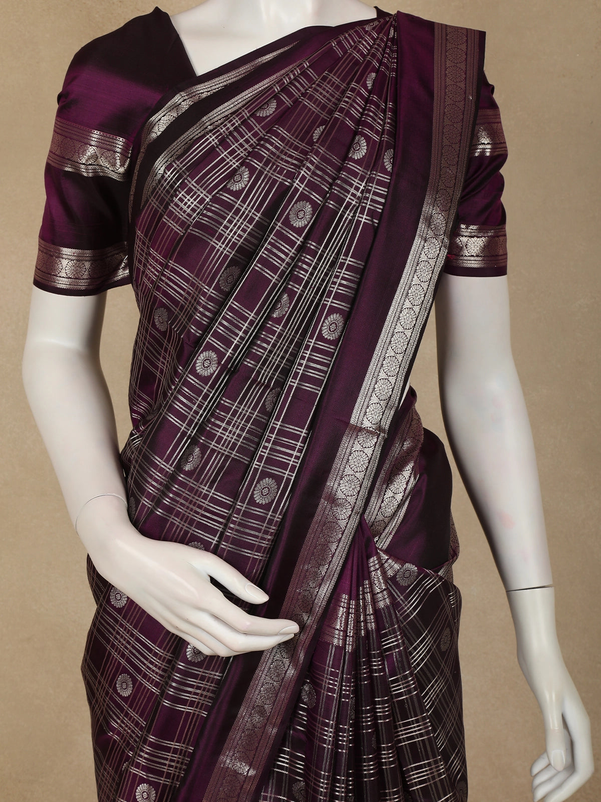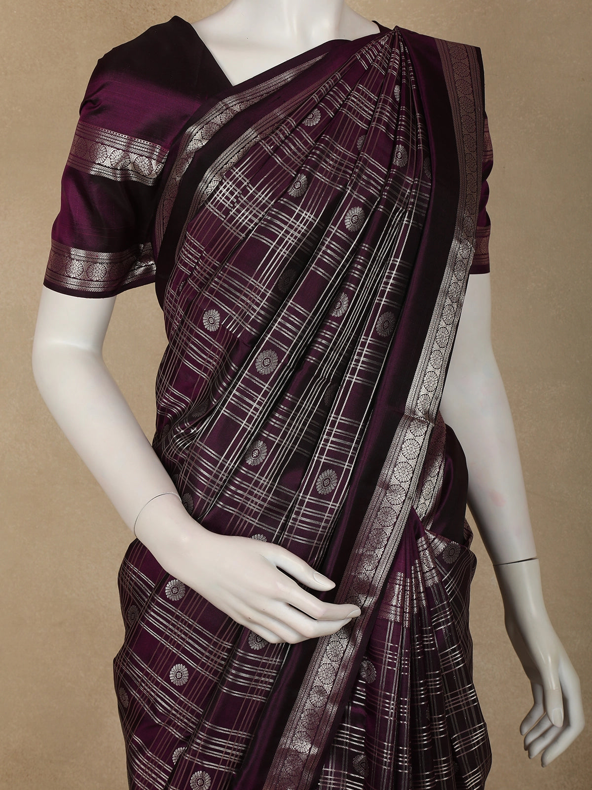 Purple Checked Zari Woven Kanchipuram Silk Saree