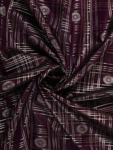 Add a touch of classic sophistication to your ethnic collection with this Purple Checked Zari Woven Kanchipuram Silk Saree. The rich purple silk body is beautifully highlighted with a traditional checked pattern, intricately woven with zari to create a timeless and elegant appeal.