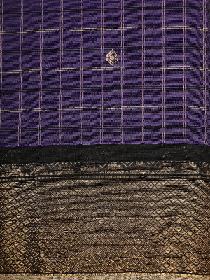 Purple Checks Design Cotton Saree with Black Zari Woven Border