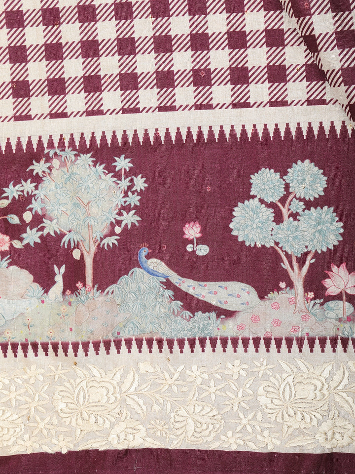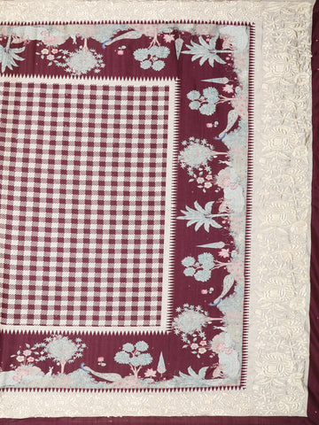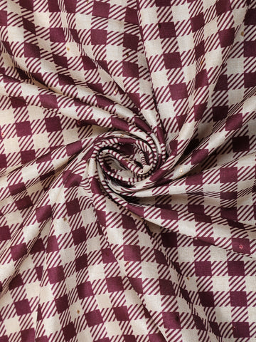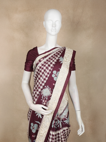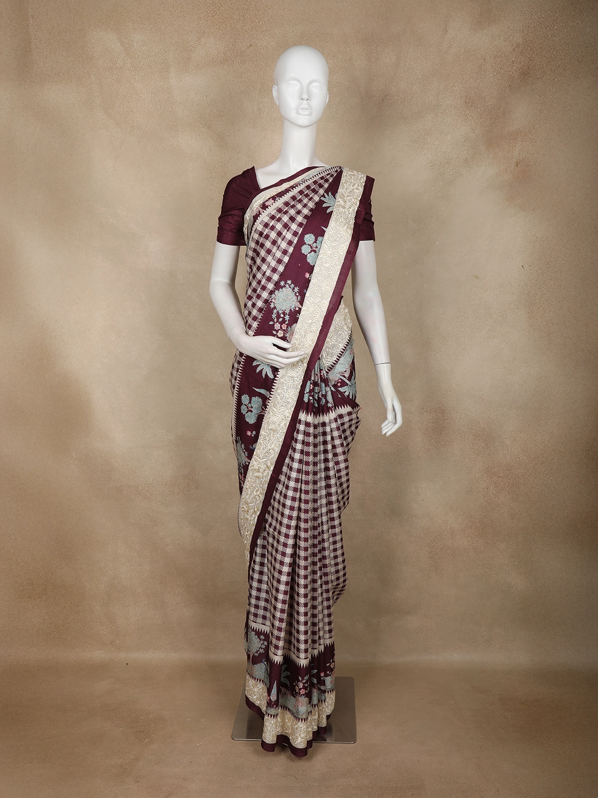 Wine Purple Checks Semi Tussar Saree With Designer Border