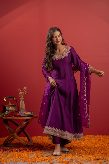 Purple Embroidered Silk Anarkali Suit with Dupatta