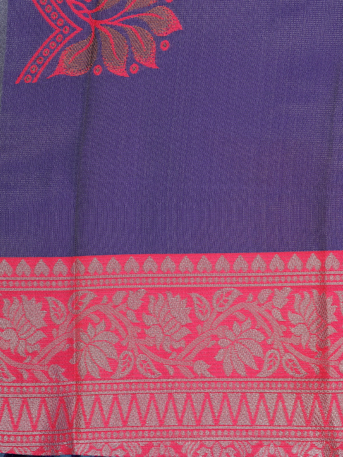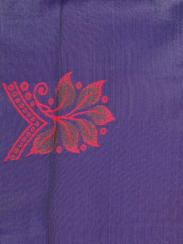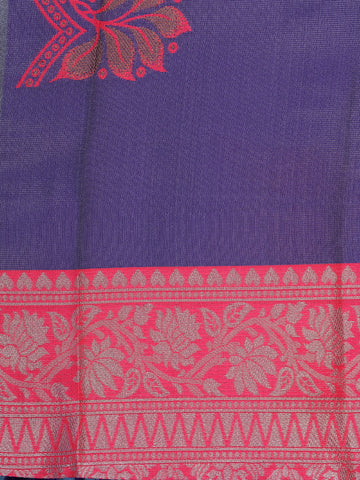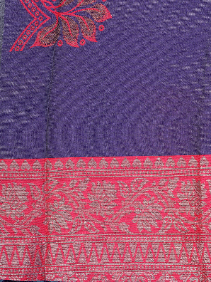 Purple Floral Butta Woven Art Silk Saree With Contrast Pink Zari Border