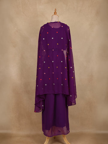 Purple Floral Design Georgette Skirt Top