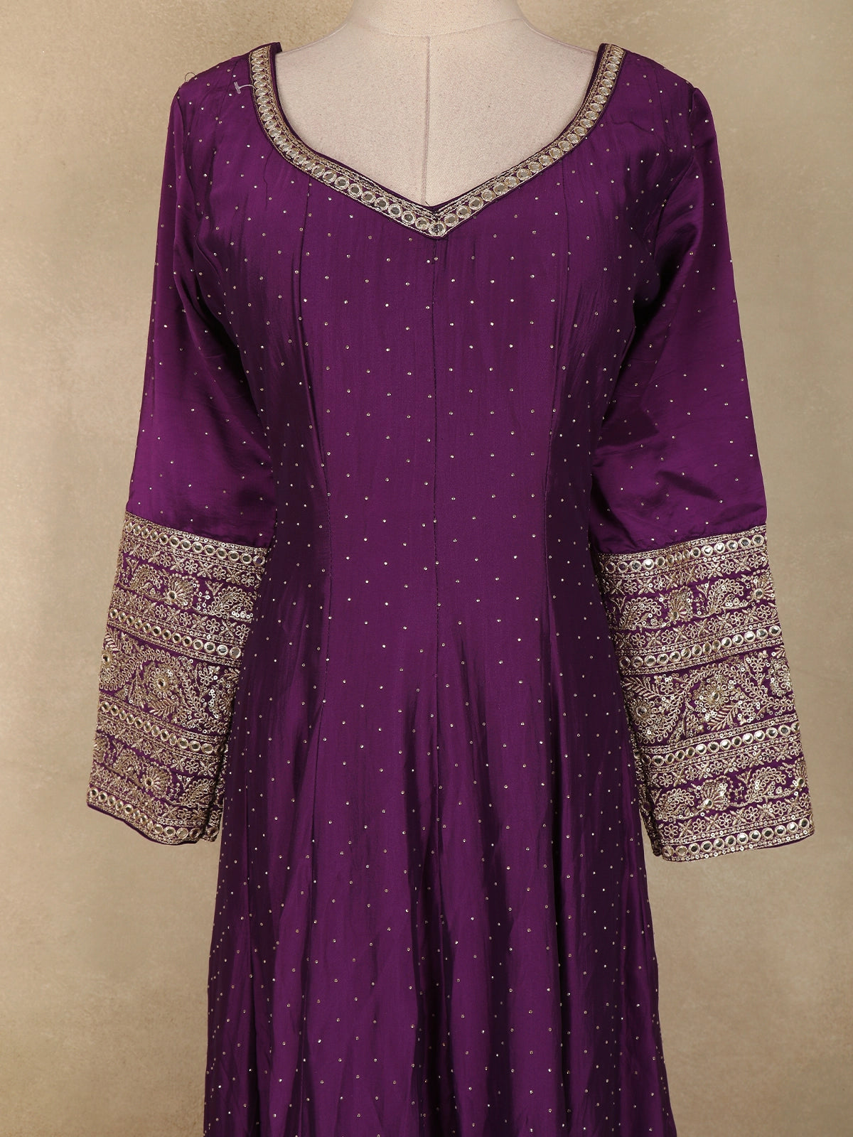 Step into regal elegance with this mesmerizing Purple Raw Silk Gown, exquisitely crafted for festive and wedding celebrations. The luxurious raw silk fabric lends a rich texture and natural sheen, enhancing the sophistication of the deep plum hue.