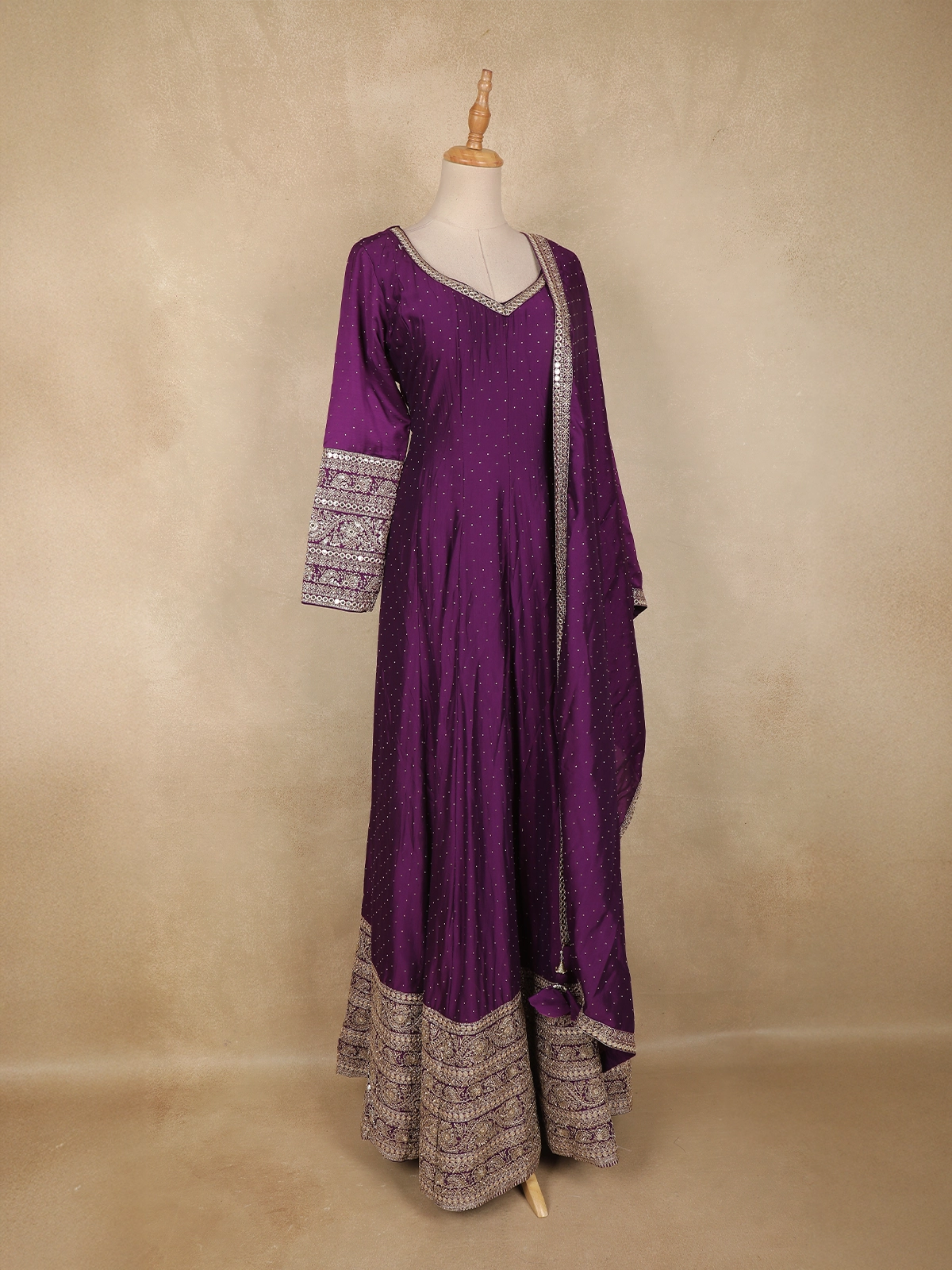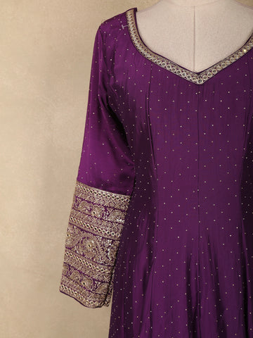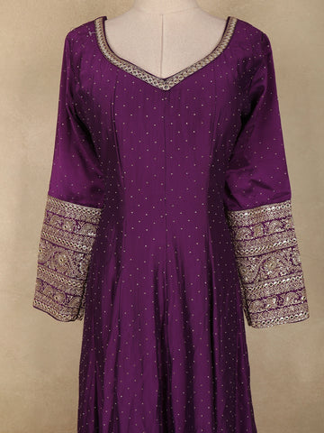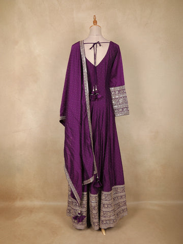 Purple Floral Embroidered Design Raw Silk Gown with Dupatta