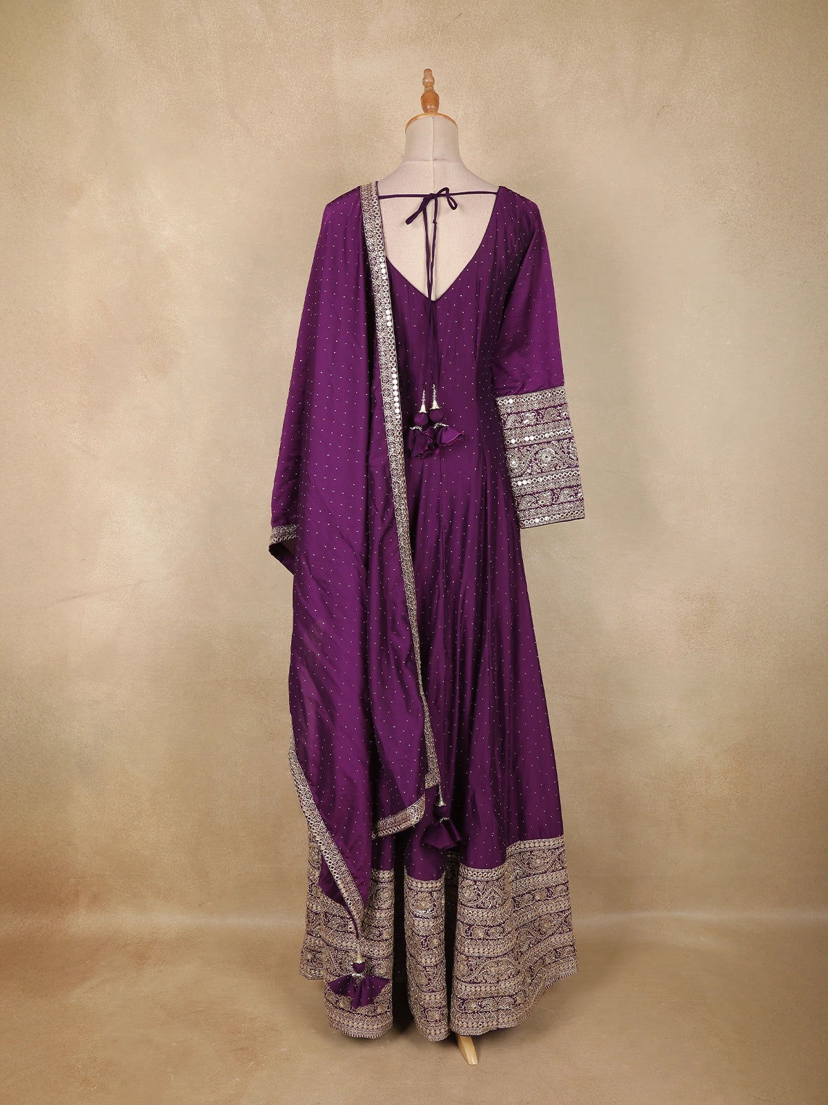 Completing the ensemble is a coordinated embroidered dupatta, adorned with detailed borders and tassel accents for an elevated ethnic appeal. The harmonious blend of rich colour, traditional embroidery, and elegant structure makes this outfit perfect for weddings, engagements, receptions, and grand festive occasions.
