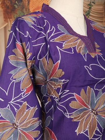Purple Floral Printed Cotton Salwar Suit with Dupatta