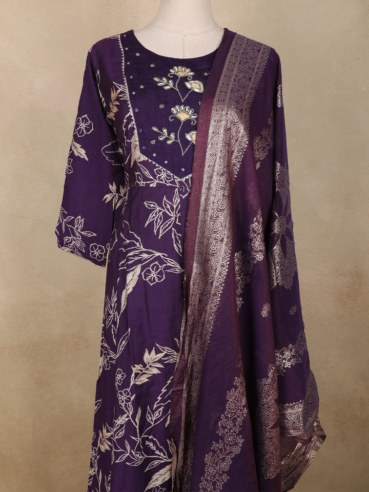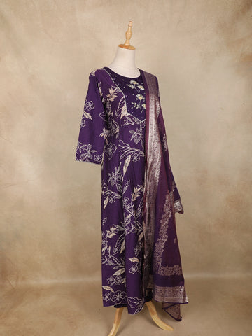 Purple Floral Printed Cotton Straight Cut Salwar Suit with Embroidered Yoke and Dupatta