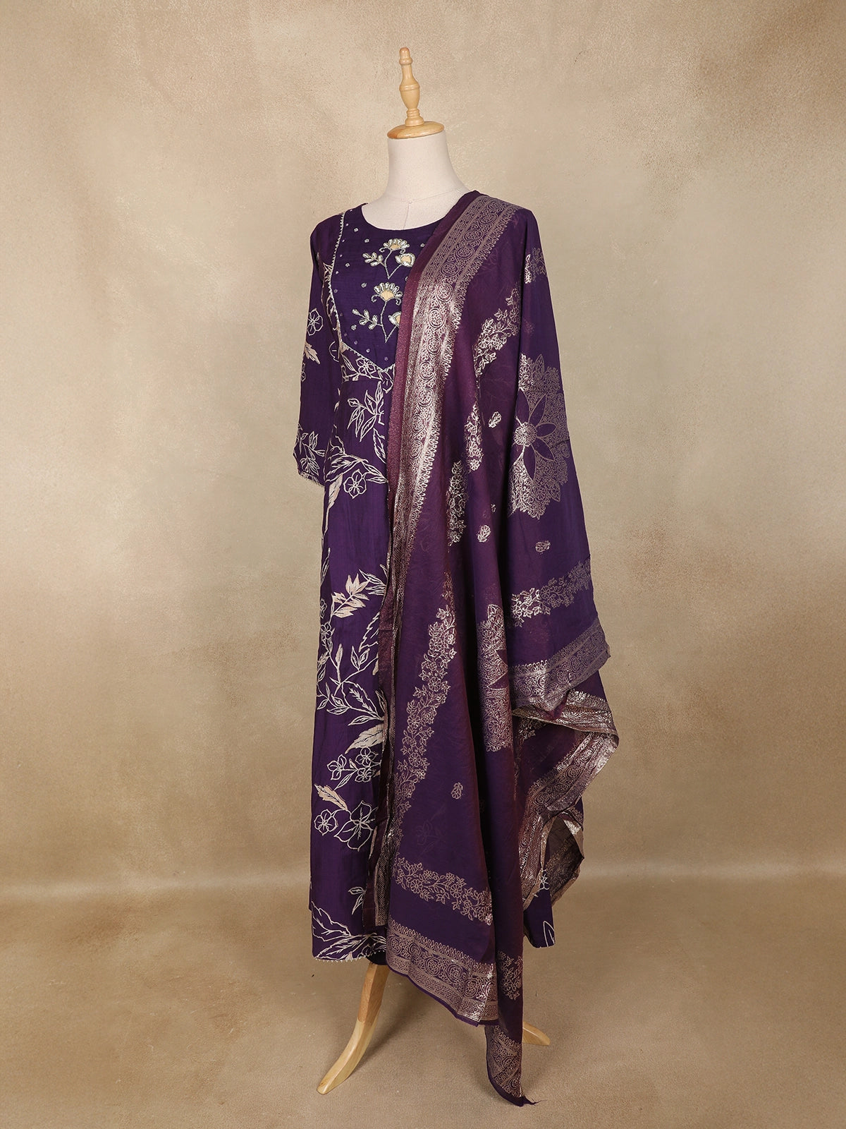 Elevate your everyday elegance with this Purple Floral Printed Cotton Salwar Suit, crafted to blend comfort with subtle sophistication. The straight-cut silhouette features an all-over floral print in soothing beige tones, offering a refined and graceful look.