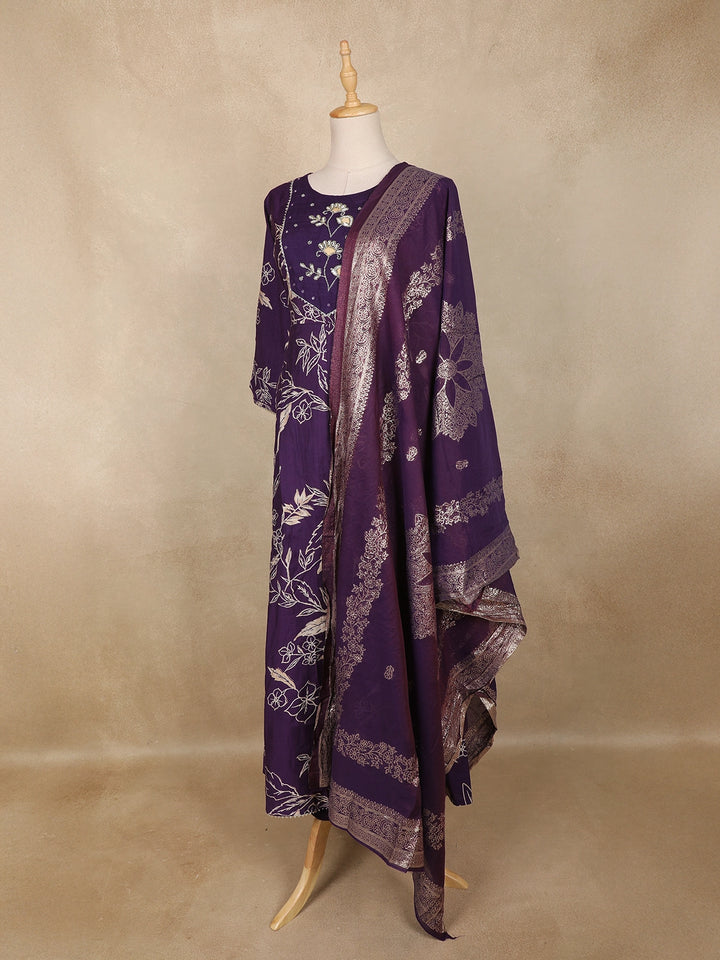 Paired with a beautifully woven matching dupatta showcasing intricate zari-style motifs, this set brings a festive hint to an otherwise effortless daytime look. Perfect for office wear, casual outings, or serene festive gatherings—this outfit offers timeless elegance with every wear.
