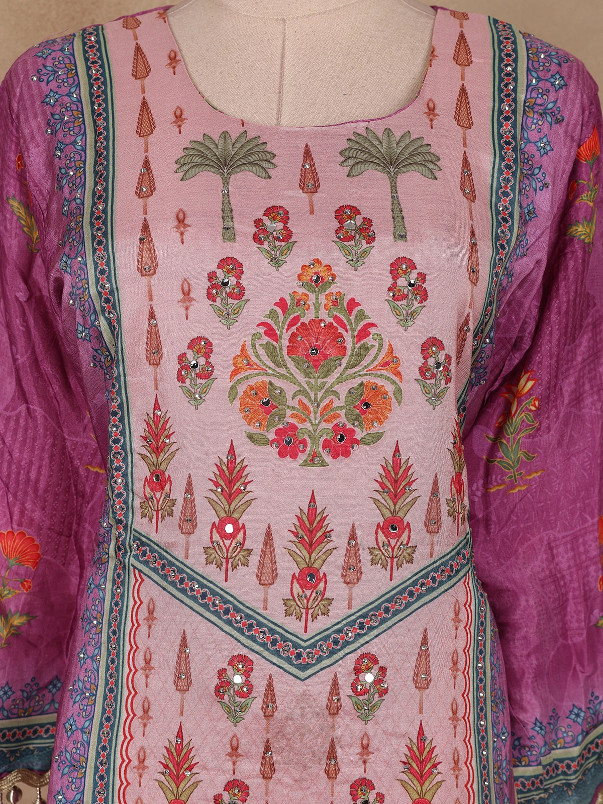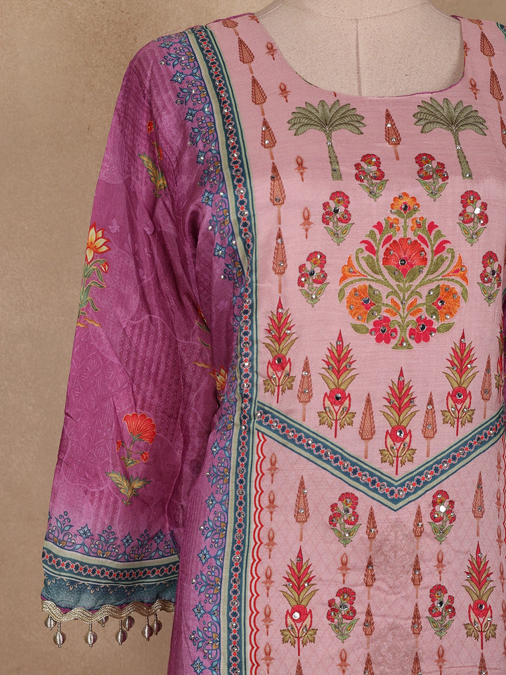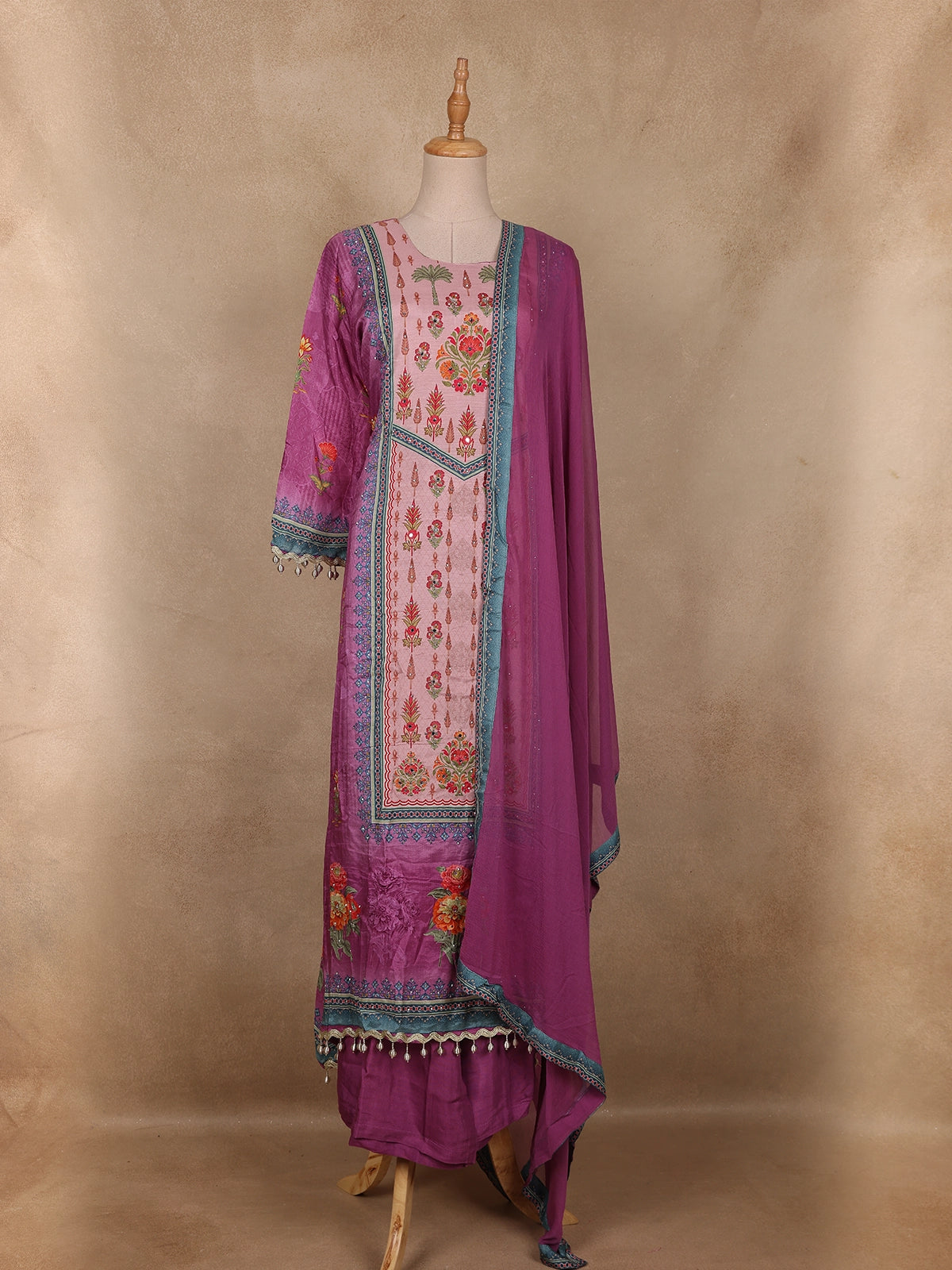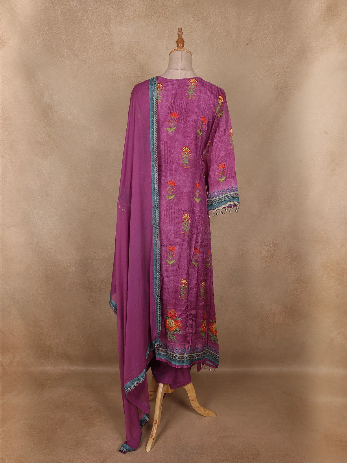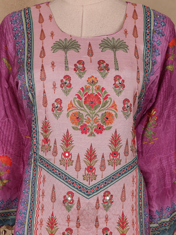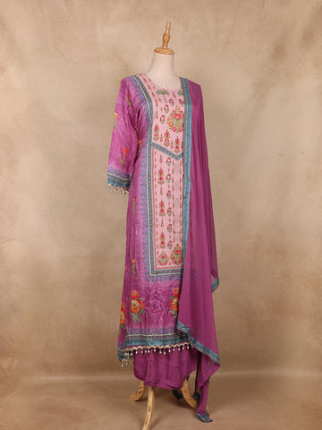 Purple Floral Printed Crepe Salwar Suit with Dupatta