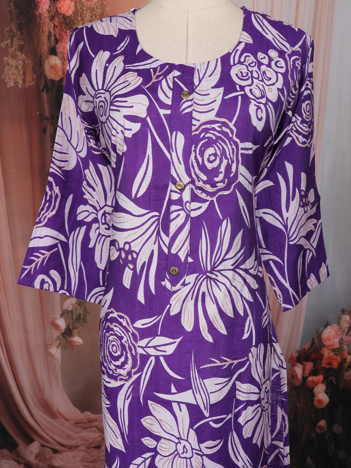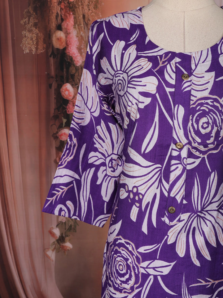 Purple Floral Printed Design Cotton Kurti