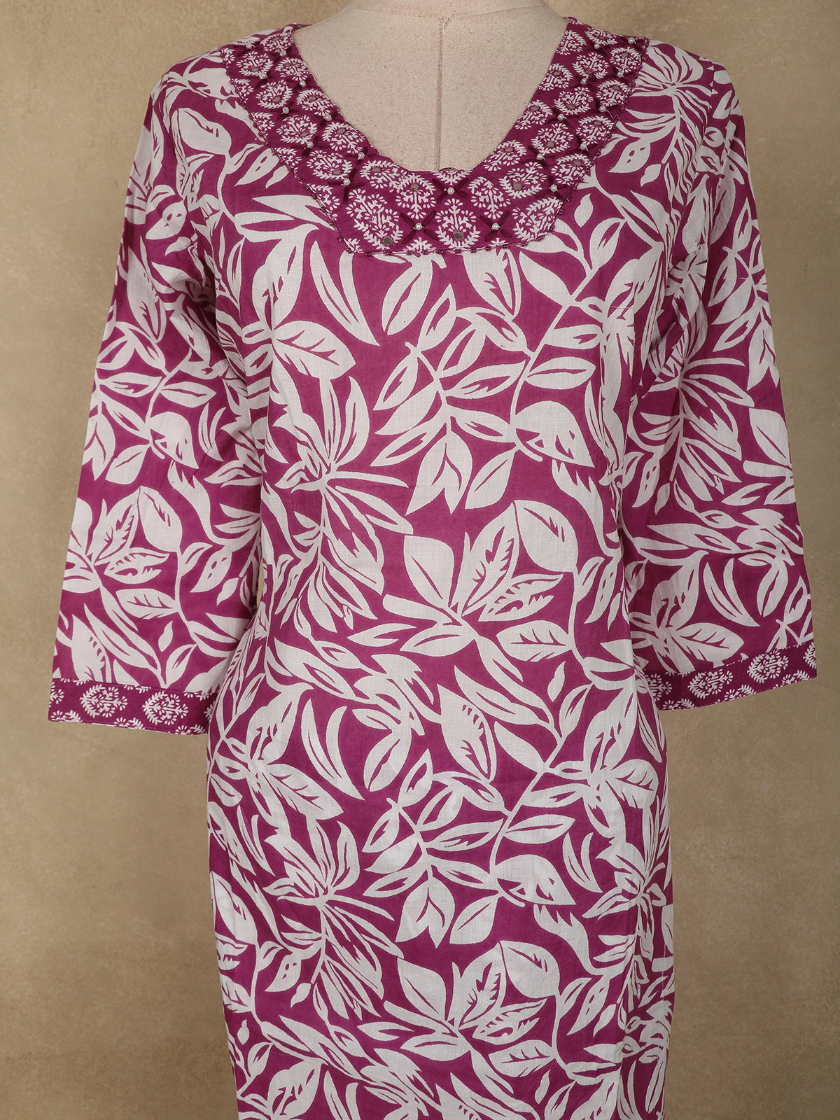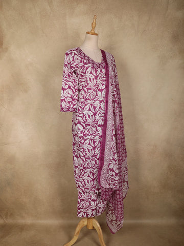 Refresh your everyday ethnic wardrobe with this elegant Purple Floral Printed Cotton Salwar Suit, thoughtfully designed for comfort and effortless style. Crafted from breathable cotton fabric, the suit features a rich burgundy base beautifully enhanced with vibrant floral and botanical prints in warm earthy hues, creating a timeless and graceful appeal.