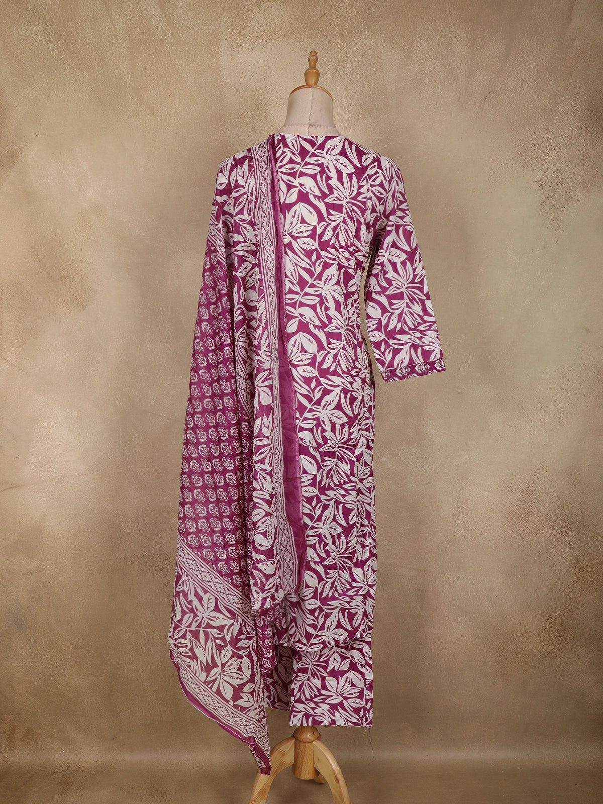 Purple Floral Printed Design Cotton Straight Cut Salwar Suit with Dupatta