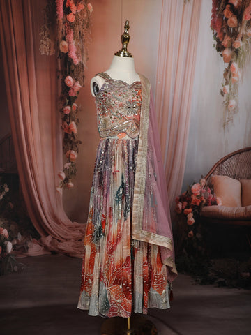 Purple Floral Sequins Design Georgette Kids Lehenga