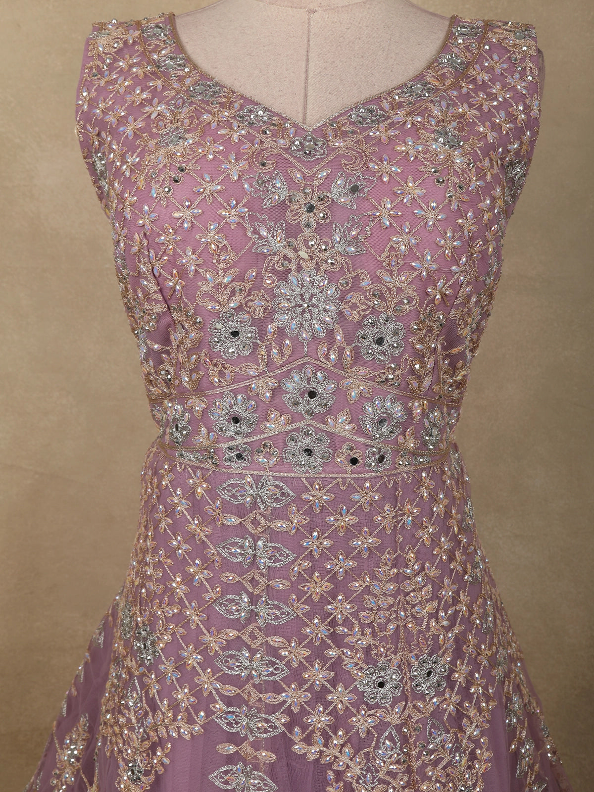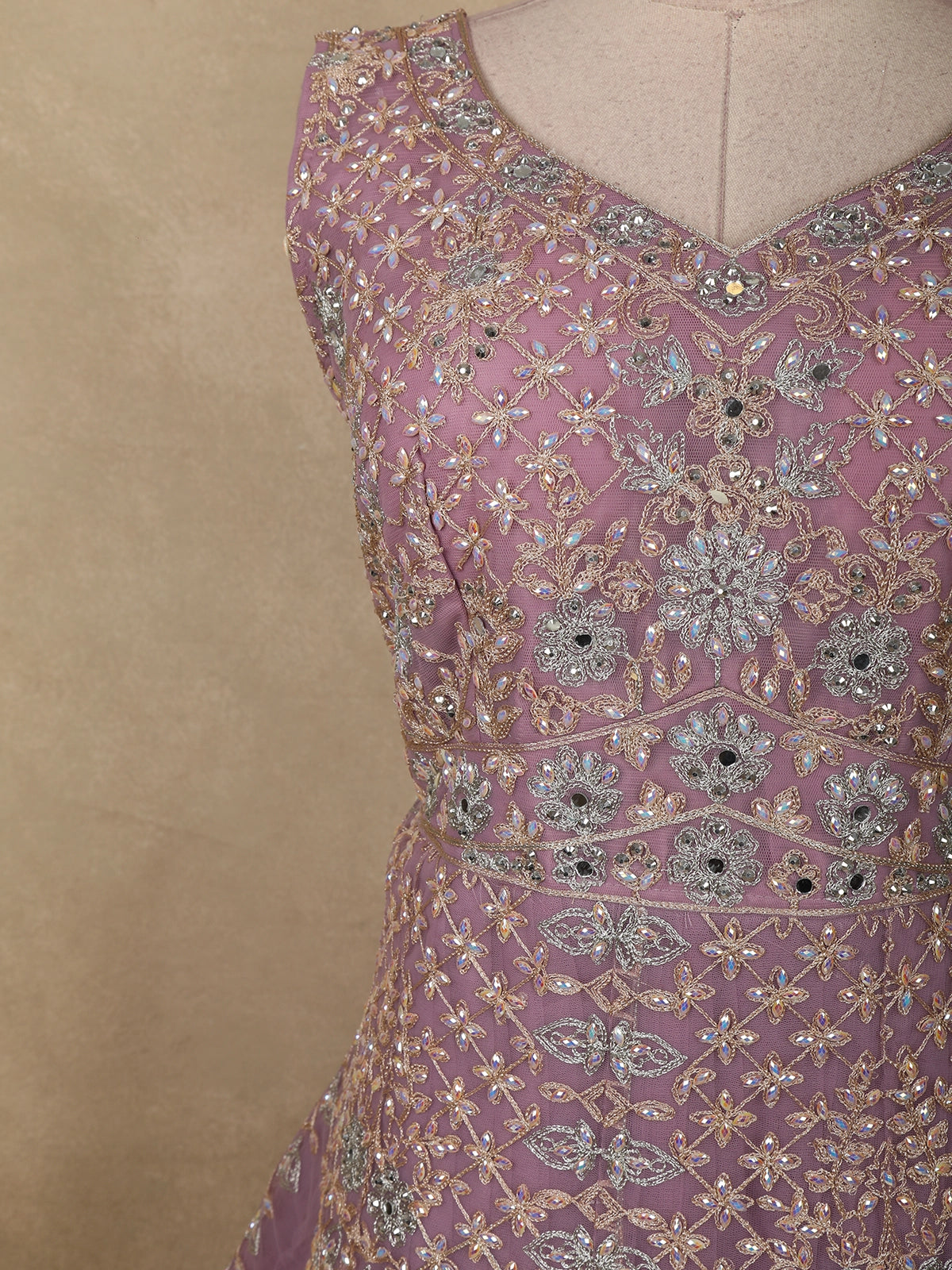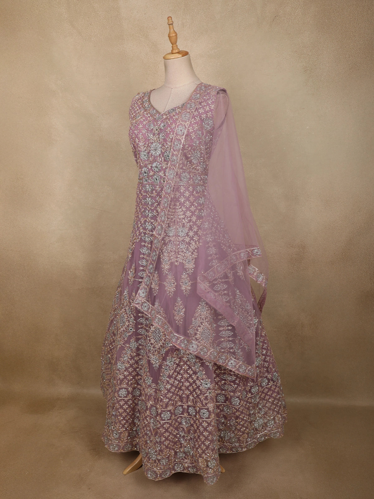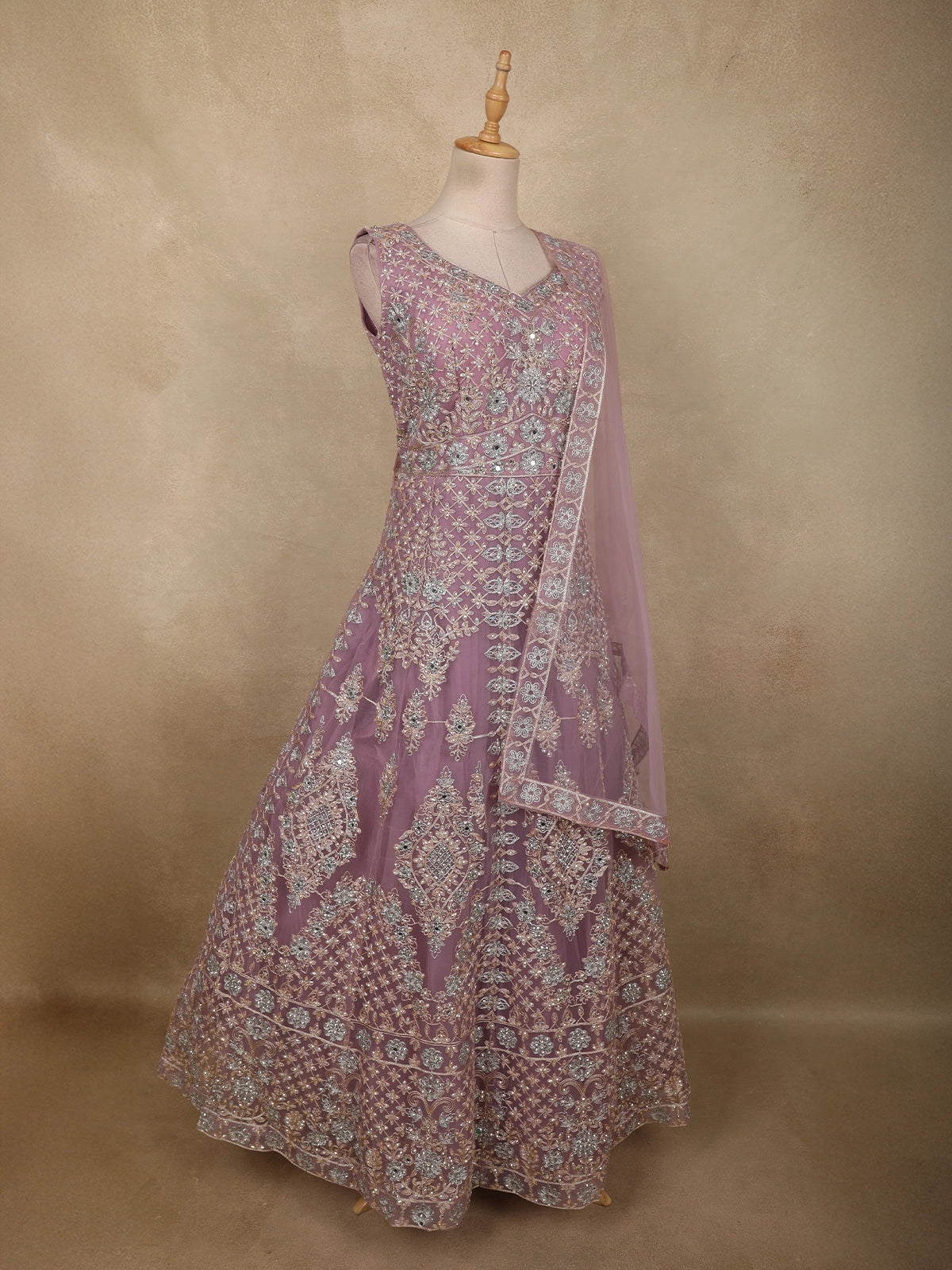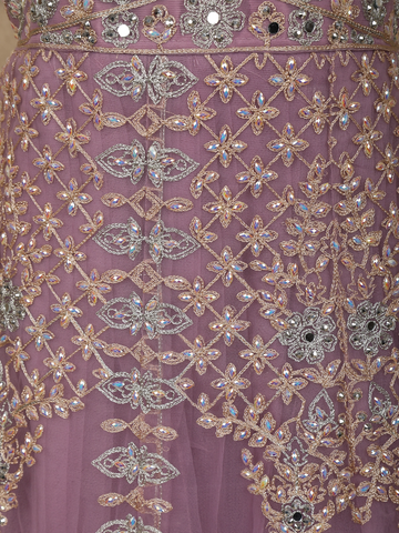 Delicate, dreamy, and exquisitely detailed, this Purple Net Gown with Dupatta is a perfect embodiment of elegance and feminine charm. Designed in a soft lavender hue, the ensemble radiates a soothing pastel appeal, making it an ideal choice for weddings, receptions, and festive celebrations.