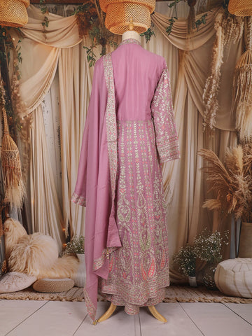 Radiate elegance with this Purple Floral Thread and Sequins Embroidered Georgette Lehenga Set, crafted to bring together tradition and contemporary charm. The soft purple hue lends a graceful and soothing appeal, making this ensemble perfect for both daytime celebrations and evening festivities. The outfit features intricate floral thread embroidery accented with delicate sequin highlights, creating a subtle shimmer that adds sophistication without overwhelming the look.