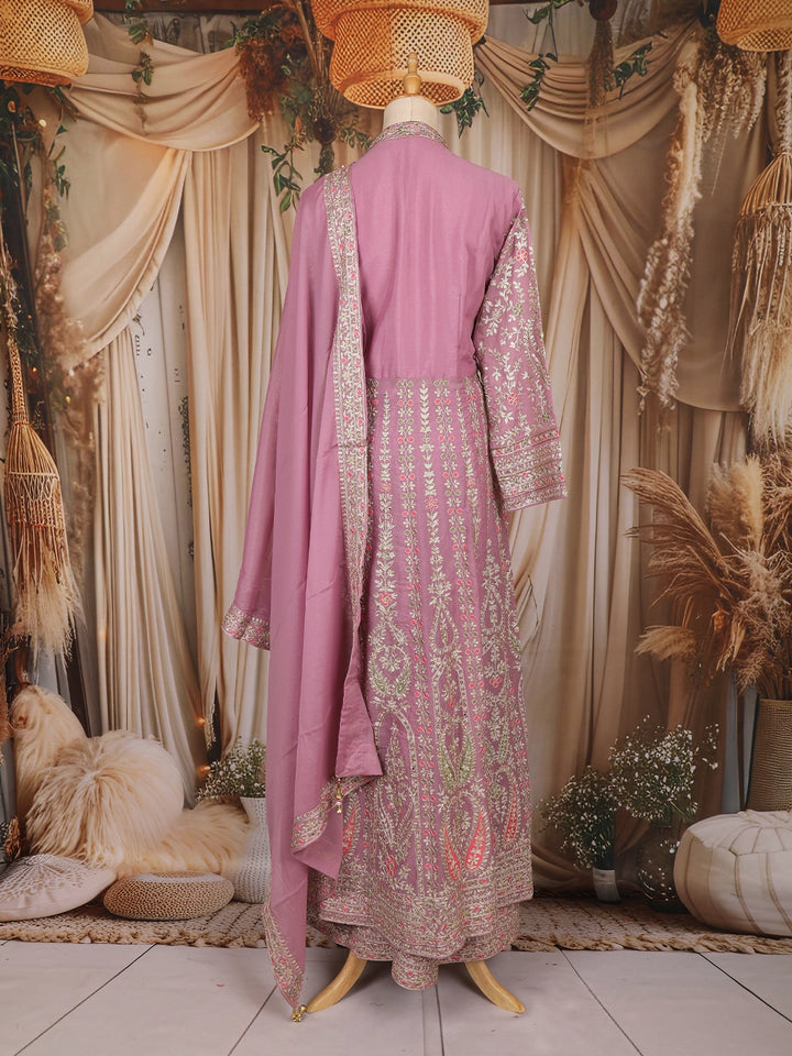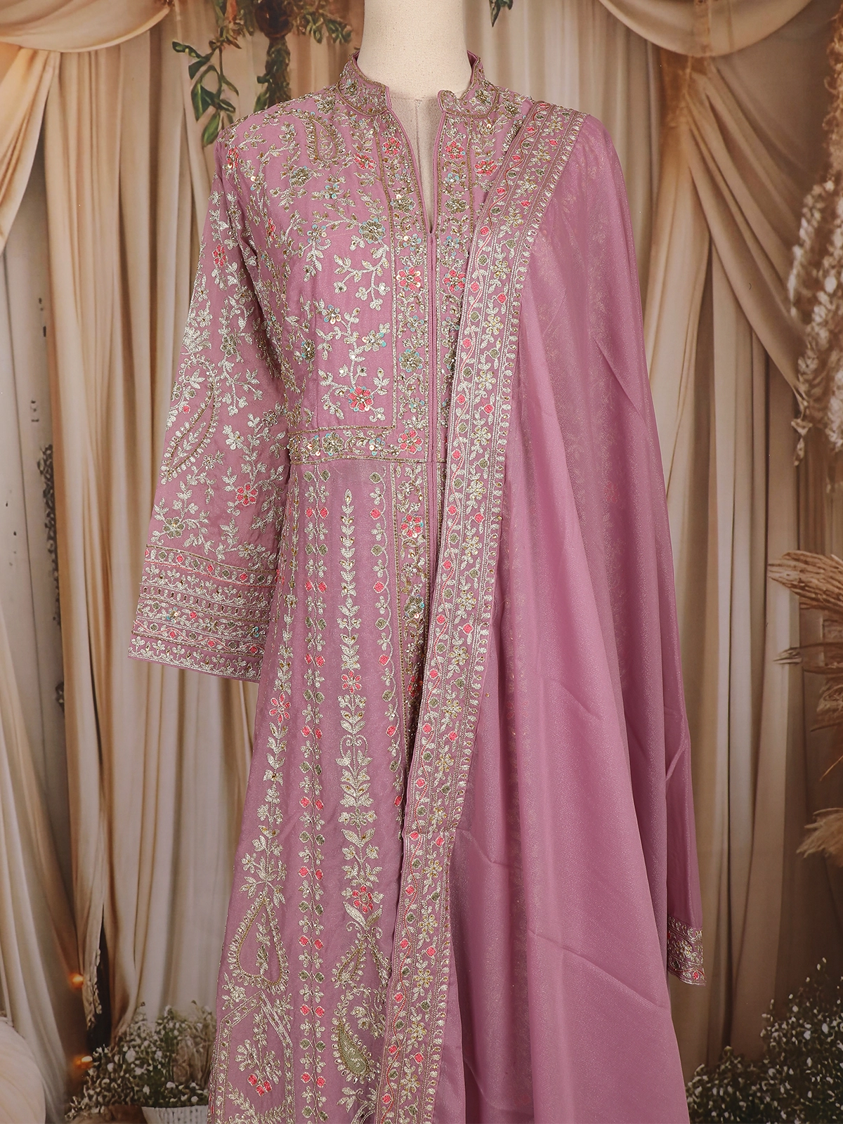 Paired with a matching embroidered georgette dupatta, bordered to perfection, the ensemble feels cohesive and balanced. The dupatta drapes lightly, adding grace to every step and gesture.