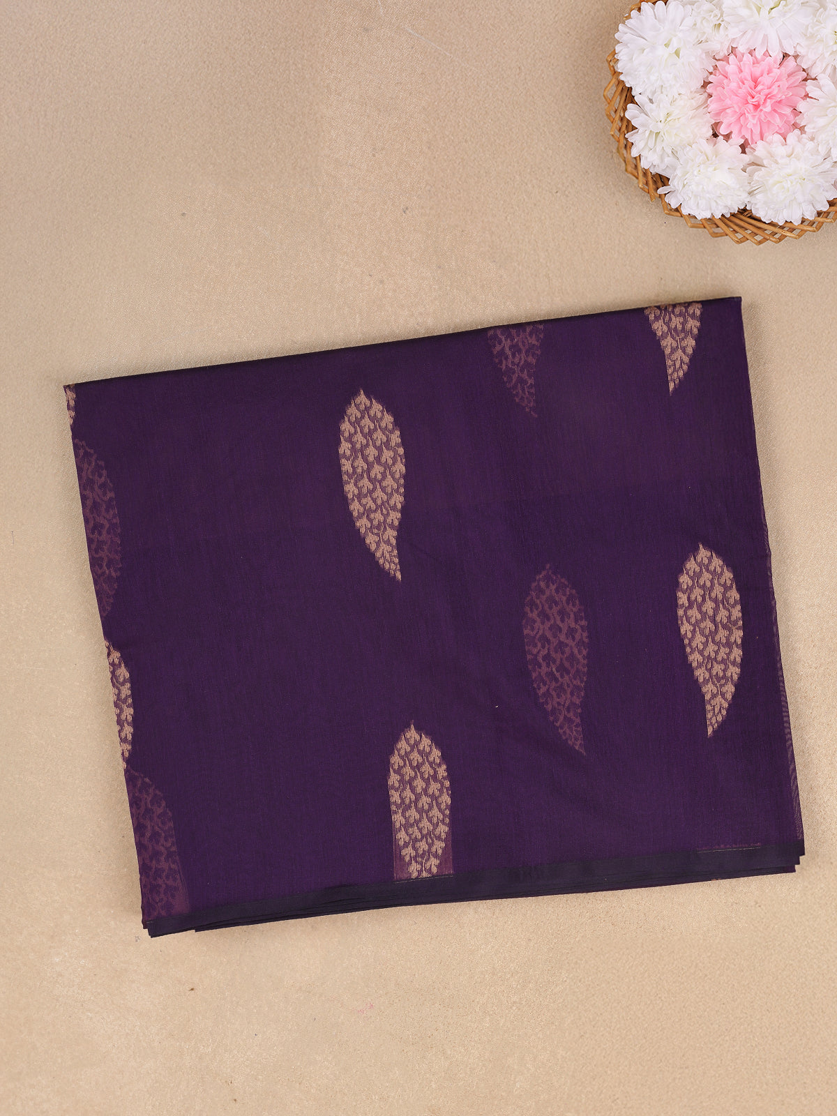 Purple Leaf Woven Design Cotton Saree with Self Border