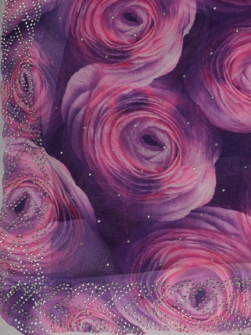 Turn heads with this luminous Purple Chiffon Saree, featuring a breathtaking rose-floral print in vibrant shades of pink, magenta, and orchid purple. The soft, layered petal detailing gives the saree a luxurious, hand-painted look that is both modern and ultra-feminine.