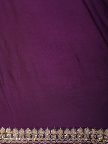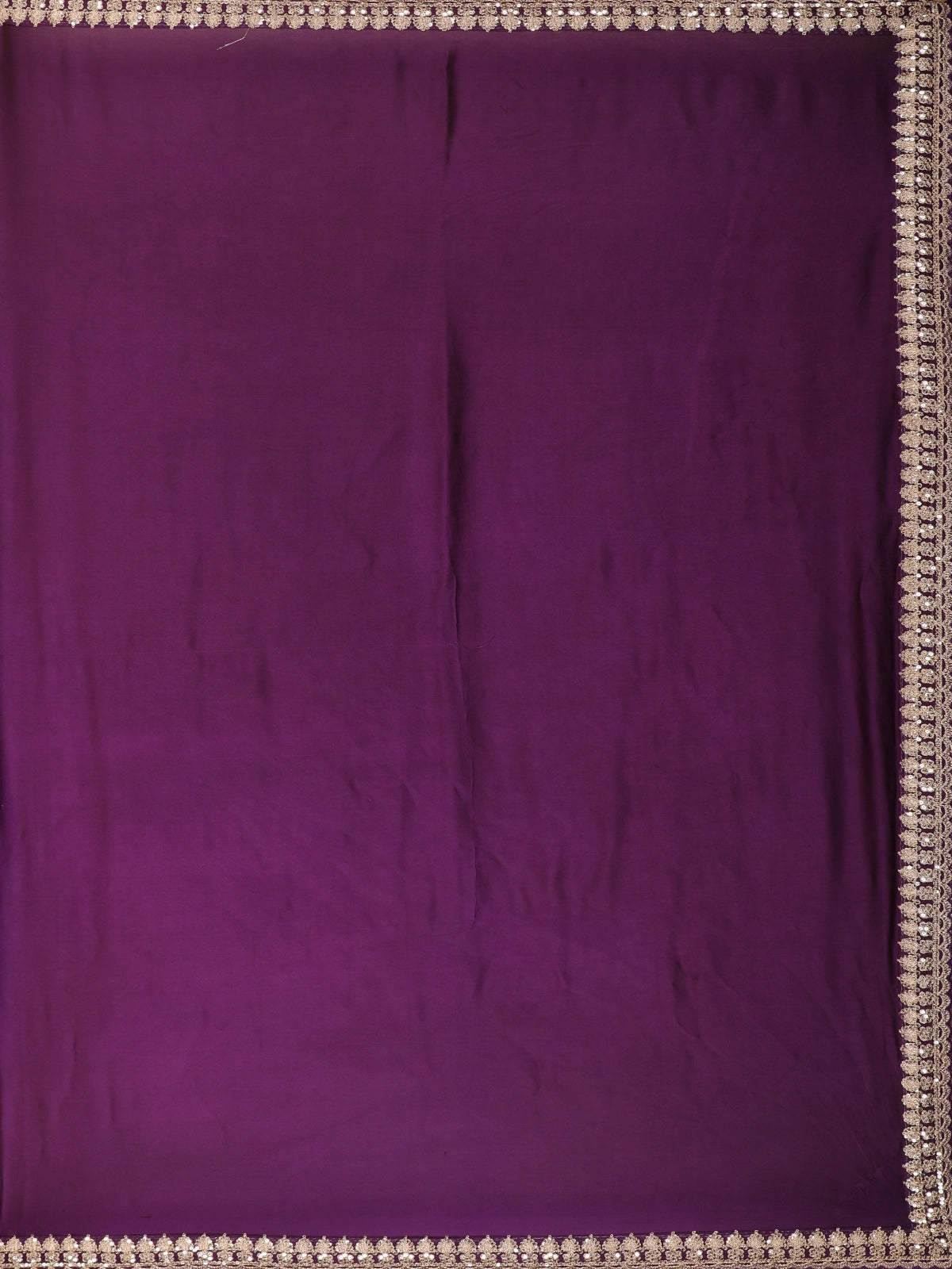 Purple Sequins Design Satin Saree with Embellished Lace Border