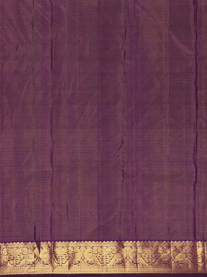 A symbol of royal elegance, this Purple Pure Kanchipuram Silk Saree showcases intricate gold zari buttas scattered across the body, giving it a refined and graceful appeal. The luxurious pure silk fabric brings a rich sheen, while maintaining the traditional grandeur Kanchipuram silks are celebrated for.