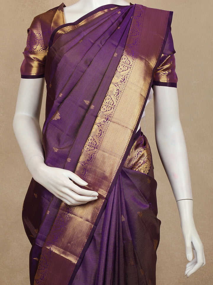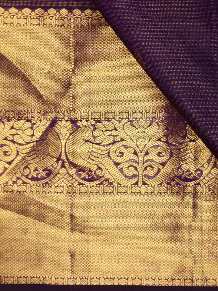 Purple Small Butta Woven Pure Kanchipuram Silk Saree with Rich Zari Border