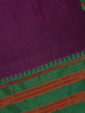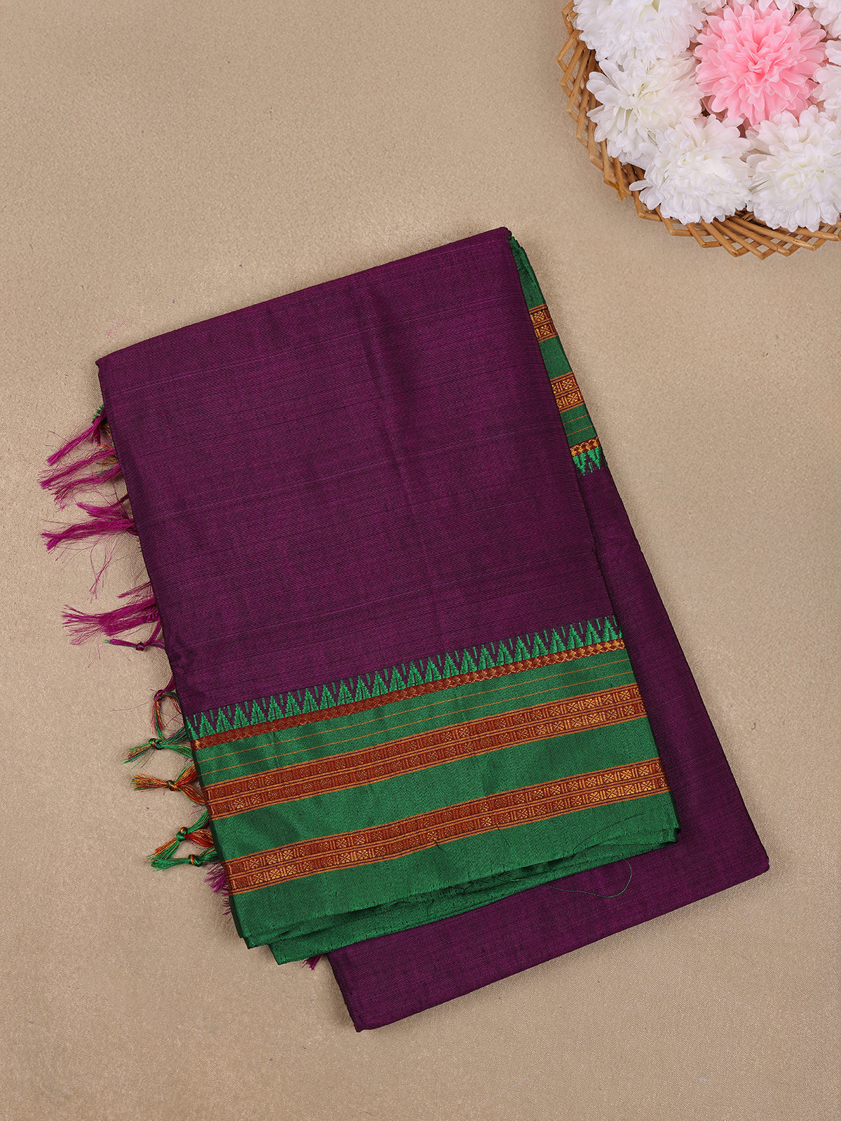 Purple Solid Design Semi Silk Cotton Saree with Contrast Green Border
