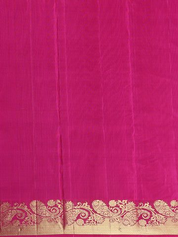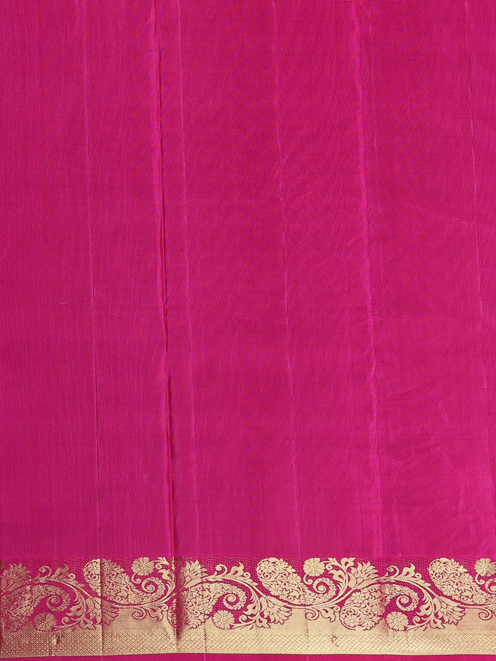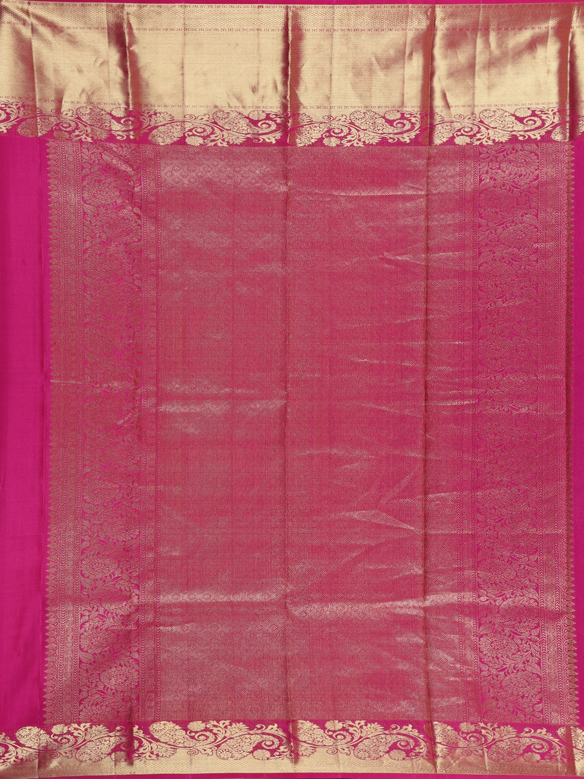 Paired with a Contrast pink zari-woven blouse, this drape captures the grandeur of South Indian craftsmanship—perfect for weddings, festive occasions, and grand celebrations. The silk’s rich texture ensures a luxurious fall, making you stand out with understated sophistication.