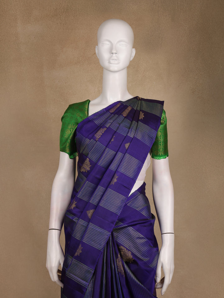 Navy Blue Stripes Woven Design Kanchipuram Silk Saree